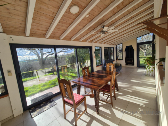 En parfait état, elle se compose au rez-de-chaussée d’un grand salon séjour de 45 m², une cuisine de 16 m² qui est ouverte sur une véranda récente (climatisation réversible) de plus de 23 m².