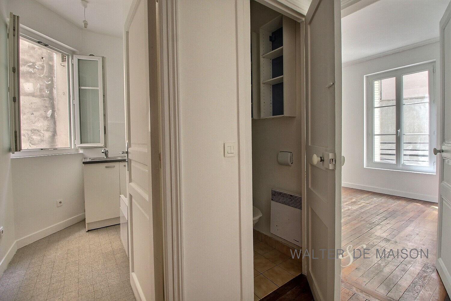 Il comprend une entrée, une pièce à vivre sur cour orientés sud de 11,27m2, une cuisine et une salle d’eau avec wc.