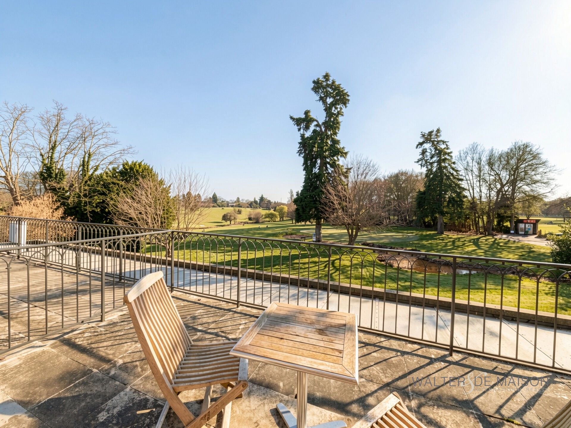 Le point fort du bien : une très grande terrasse offrant une vue panoramique imprenable sur les fairways verdoyants du golf, un spectacle apaisant à toute heure de la journée.