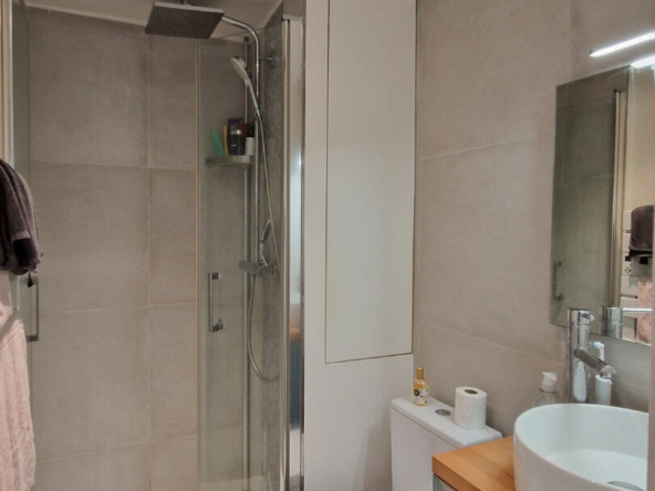 3 fenêtres double vitrage donnant sur une jolie cour pavée végétalisée, nombreux placards, cuisine équipée et salle de douche.