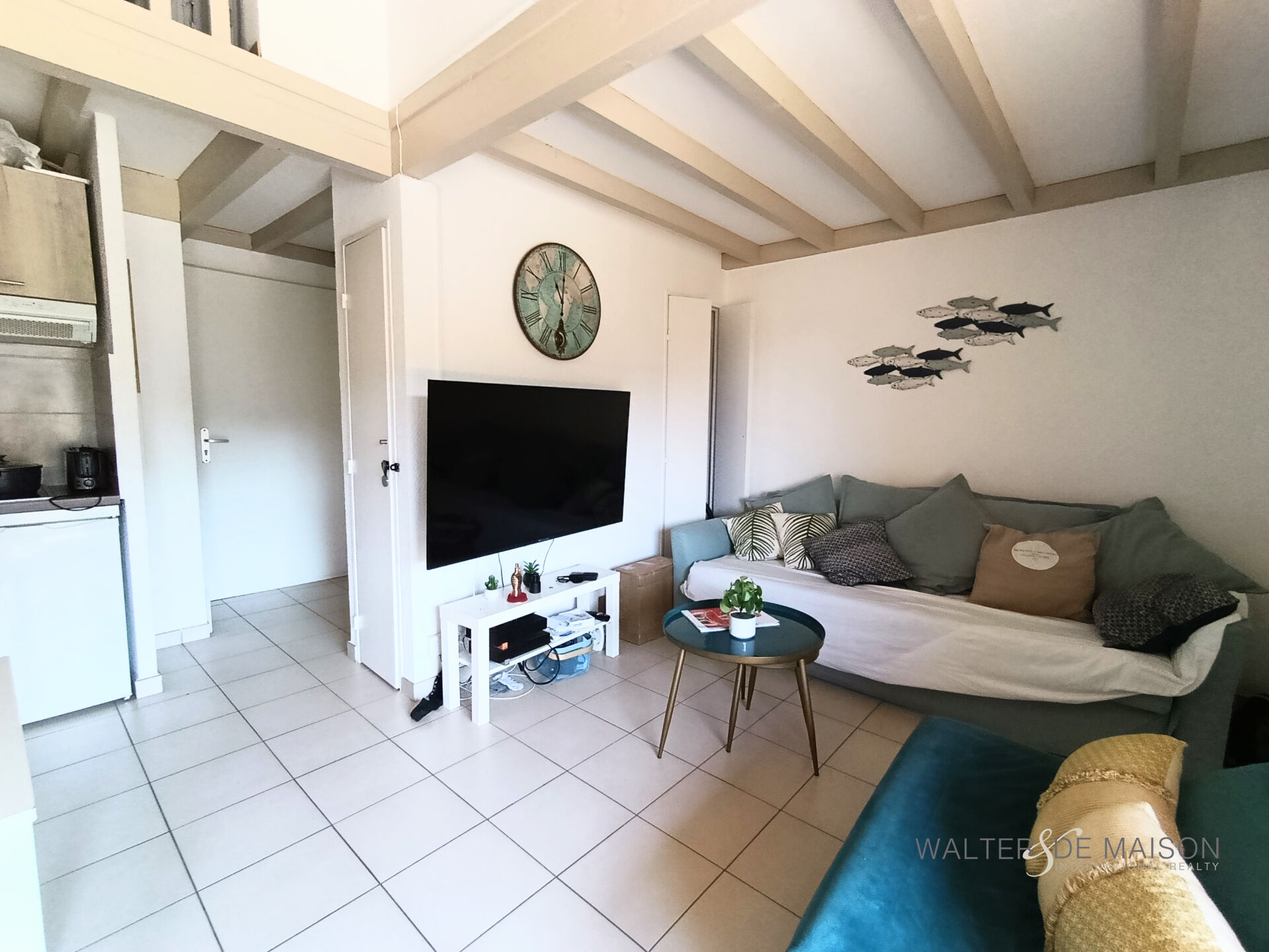 Un séjour lumineux avec cuisine entièrement équipée,