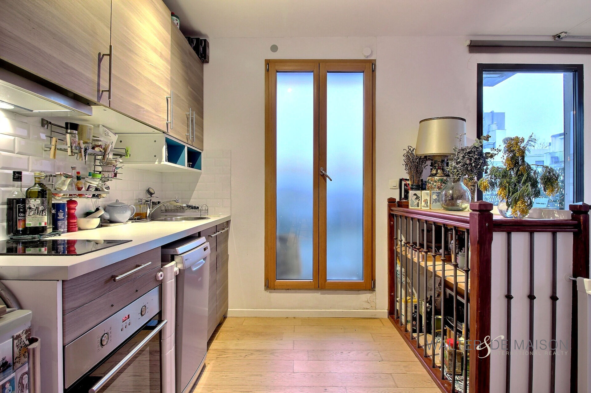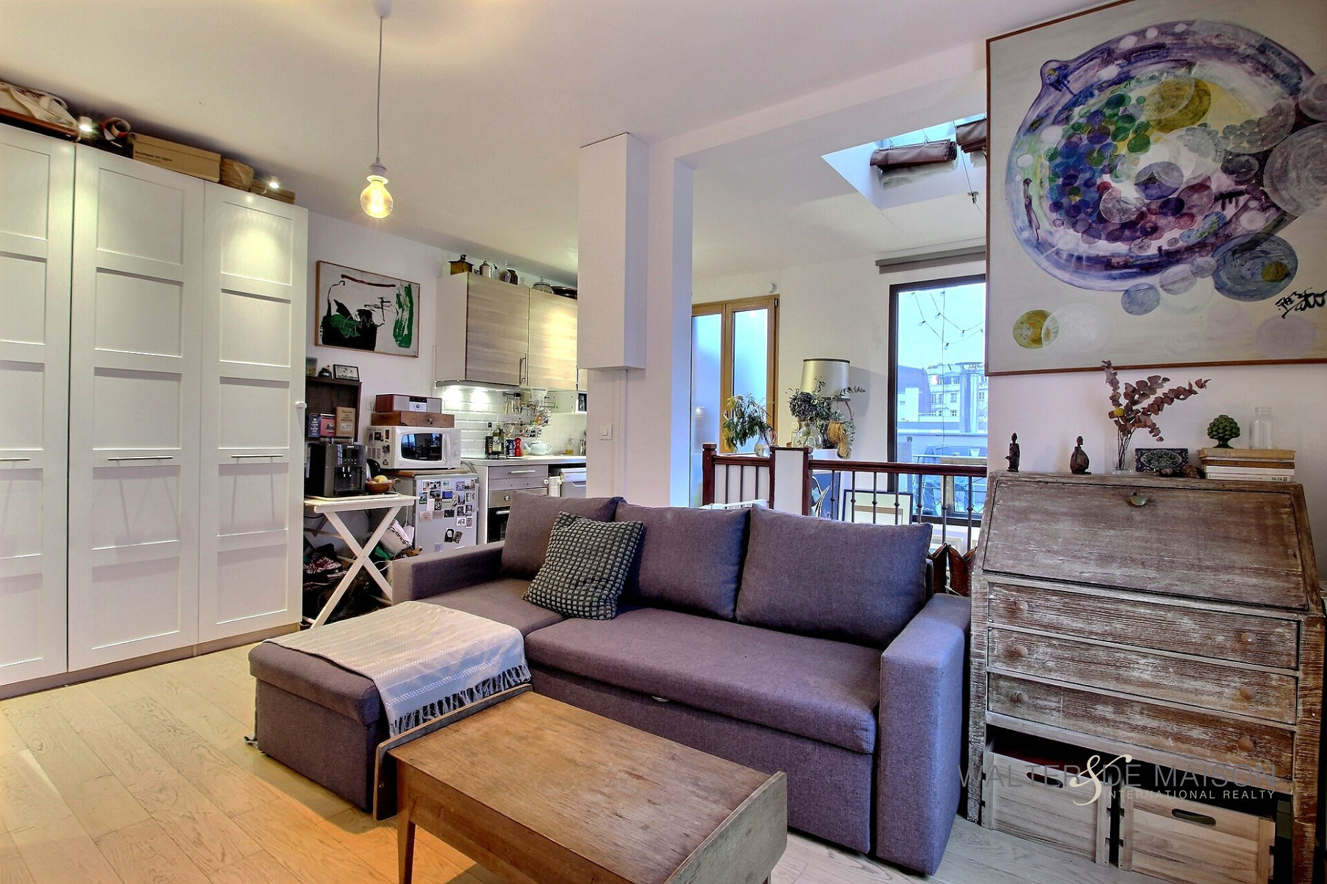 Situé au 5ème et dernier étage d’un petit immeuble ancien sans ascenseur, rehaussé en 2006, l’appartement dont l’accès en duplex, se fait au 4ème étage par un escalier privatif, se compose comme suit :