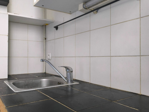 Situé au 4ème étage sans ascenseur d’un bel immeuble ancien en brique, L’appartement orienté sur rue comprend : entrée, petite cuisine indépendante, chambre, séjour de 17 m2, et salle de bain avec WC