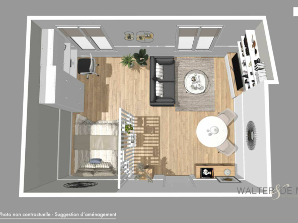 La distribution actuelle peut évoluer pour profiter d’un espace de vie de 24 m2 avec coin nuit (Voir photos de Home Staging associées), avec éventuellement ouverture de la cuisine également.
