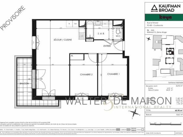 Des volumes généreux et des espaces baignés de lumière, la cuisine en angle ouverte sur le séjour, l’intérieur de ce 3 PIECES/T3 sera pratique et fonctionnel…Au Second étage avec une exposition Sud/Ouest, tout a été pensé pour cultiver un confort et un bien-être de tous les instants. La pièce de vie de plus de 28 m2 se prolonge vers l’extérieur sous la forme d’un grand balcon d’angle de près de 9m2 – à vivre comme une pièce en plus, cet espace est aménageable au gré de vos envies et propices à d’agréables moments de partage, notamment à l’approche des beaux jours. 2 chambres de respectivement 11,40m2 et 10,80m2 dont l’une avec placard. Grande salle de bain, WC indépendant.