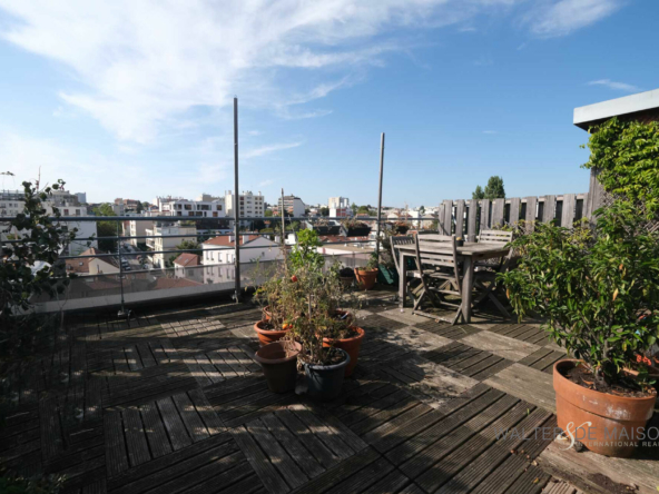 A 8 minutes à pied du métro Mairie de Montreuil, rue Danton, charmant duplex de 64 m2 (Carrez) avec un toit-terrasse de 30 m2 avec vue panoramique.