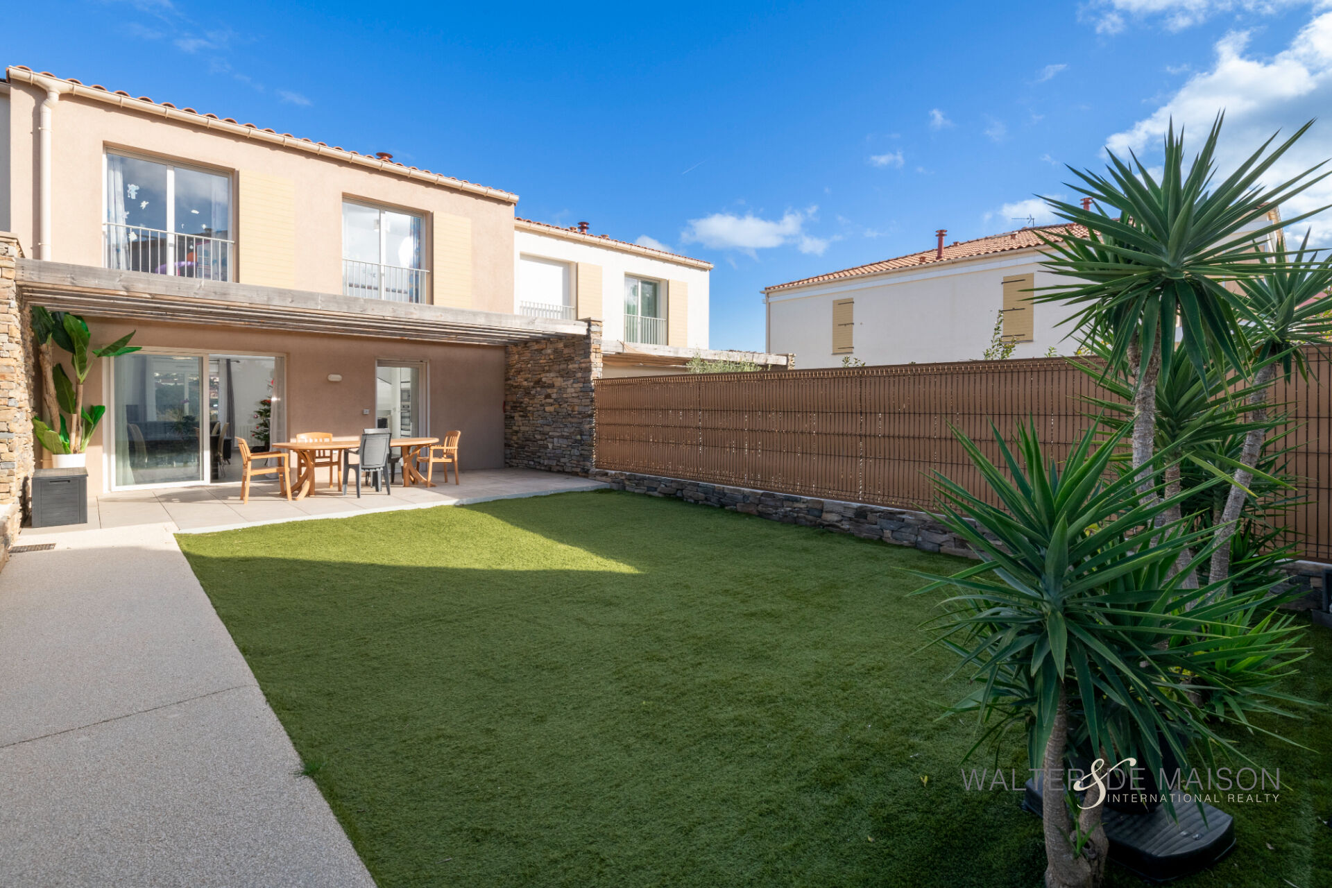 La pièce de vie, accueille une cuisine aménagée et équipée,elle s’ouvre sur une agréable terrasse prolongée par un jardin intimiste, offrant de véritables espaces extérieurs propices à la détente.