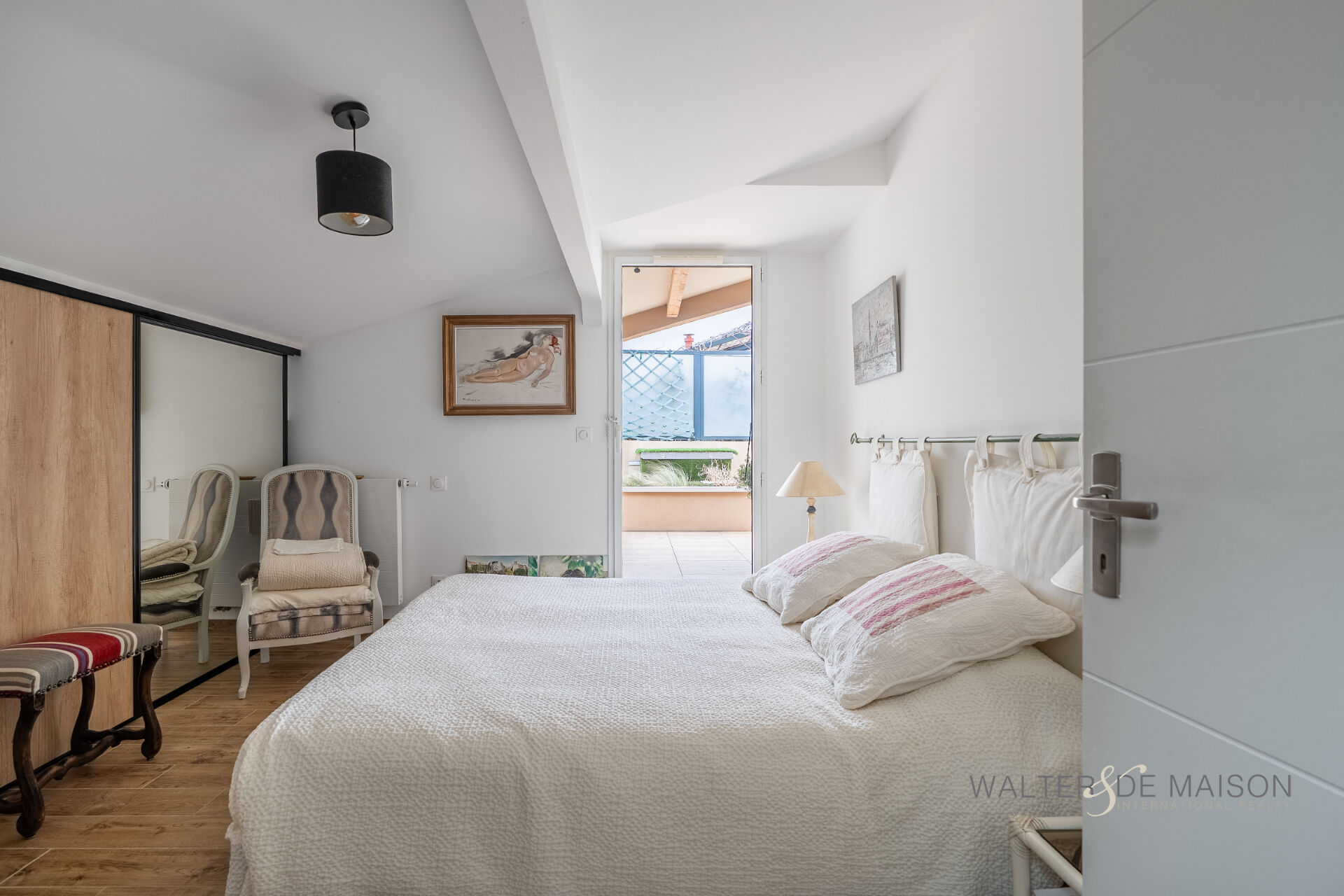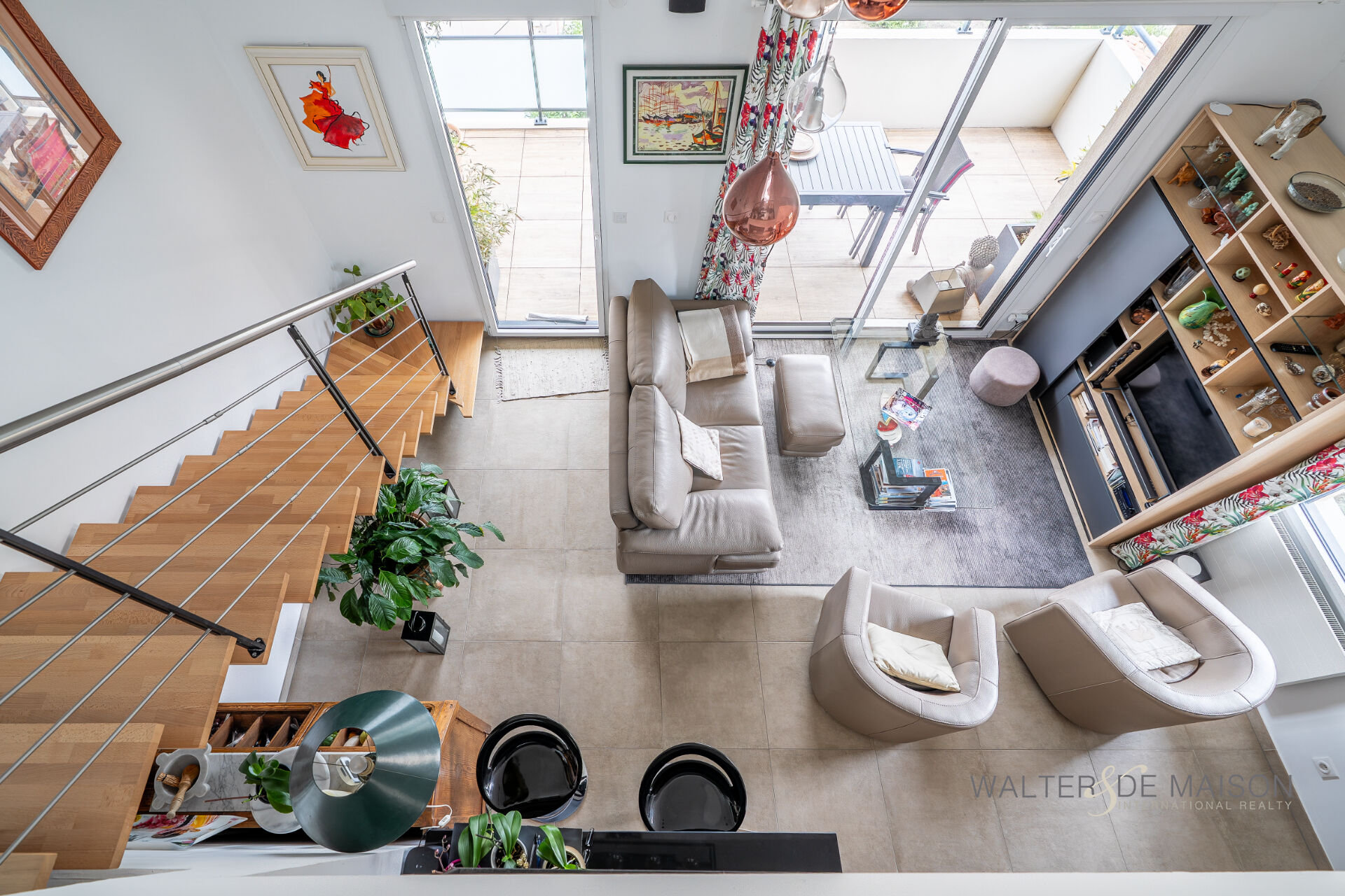 A l’étage, l’espace se fait encore plus aérien avec un bureau baigné de lumière et deux chambres supplémentaires dotées de rangements. L’une d’elles offre un accès direct à un véritable jardin suspendu privatif de 19 m², un extérieur rare et privilégié en centre-ville. Une seconde salle d’eau contemporaine complète ce niveau parfaitement agencé.
