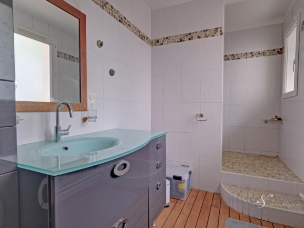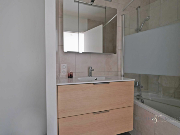 La distribution actuelle offre 2 espaces principaux : une entrée de 12,95 m2 Carrez et une pièce de vie de 18,55 m2 Carrez. Il dispose également de 2 chambres (11,93 m2et 9,96 m2 carrez), un grand dressing, une salle de bain, une salle d’eau, un WC indépendant.