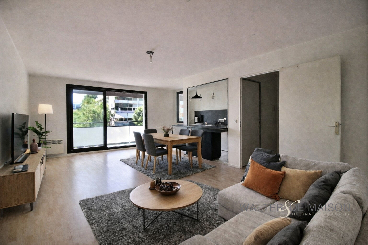 D’une superficie de 80,1 m², il s’ouvre sur une entrée avec placard et offre un agréable séjour de 25 m² avec cuisine américaine aménagée. Cet espace de vie se prolonge par un balcon exposé sud-ouest, assurant une belle luminosité tout au long de la journée.