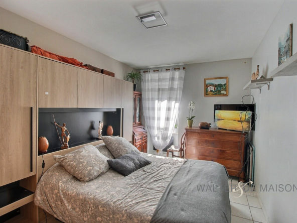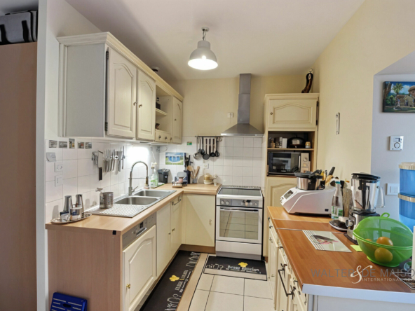 Il est situé au rez-de-chaussée d’un petit immeuble de 1948 rénové en 1974 se compose de trois étages. L’accès est sécurisé par la présence d’un interphone. Il se divise en une entrée, un vaste séjour double de 31 m², deux grandes chambres exposées à l’ouest et une cuisine ouverte, aménagée et équipée. Il comporte également une salle d’eau et des toilettes. Il bénéficie de radiateurs alimentés à l’électricité, le chauffage est individuel. Ce grand appartement est en bon état général avec un intérieur en très bon état. les fenêtres sont en pvc double vitrage , volets roulants.