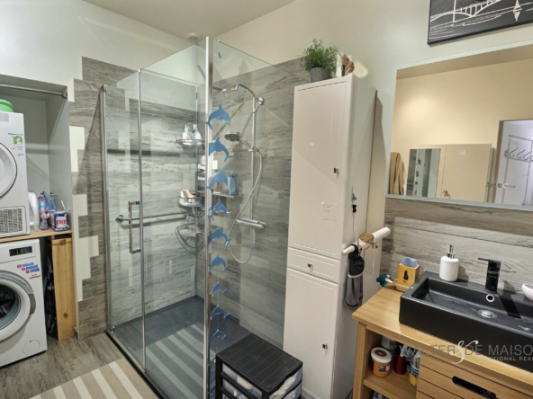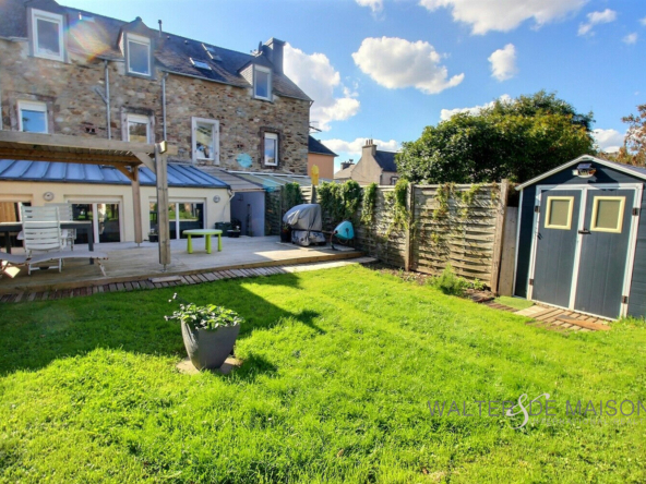 l’ espace extérieur est très agréable , pelouse , cabanon, et terrasse. Une cave de 5 m² lui est aussi associée.