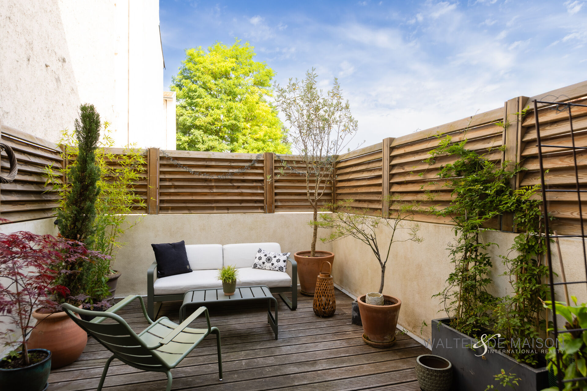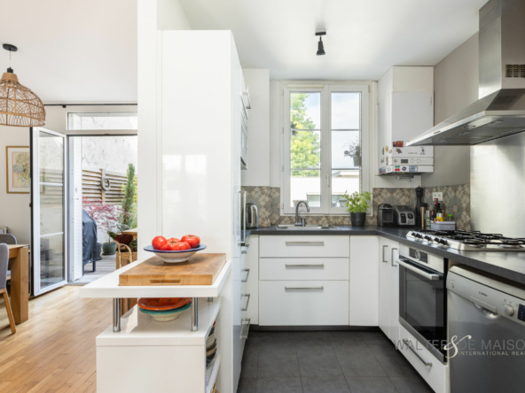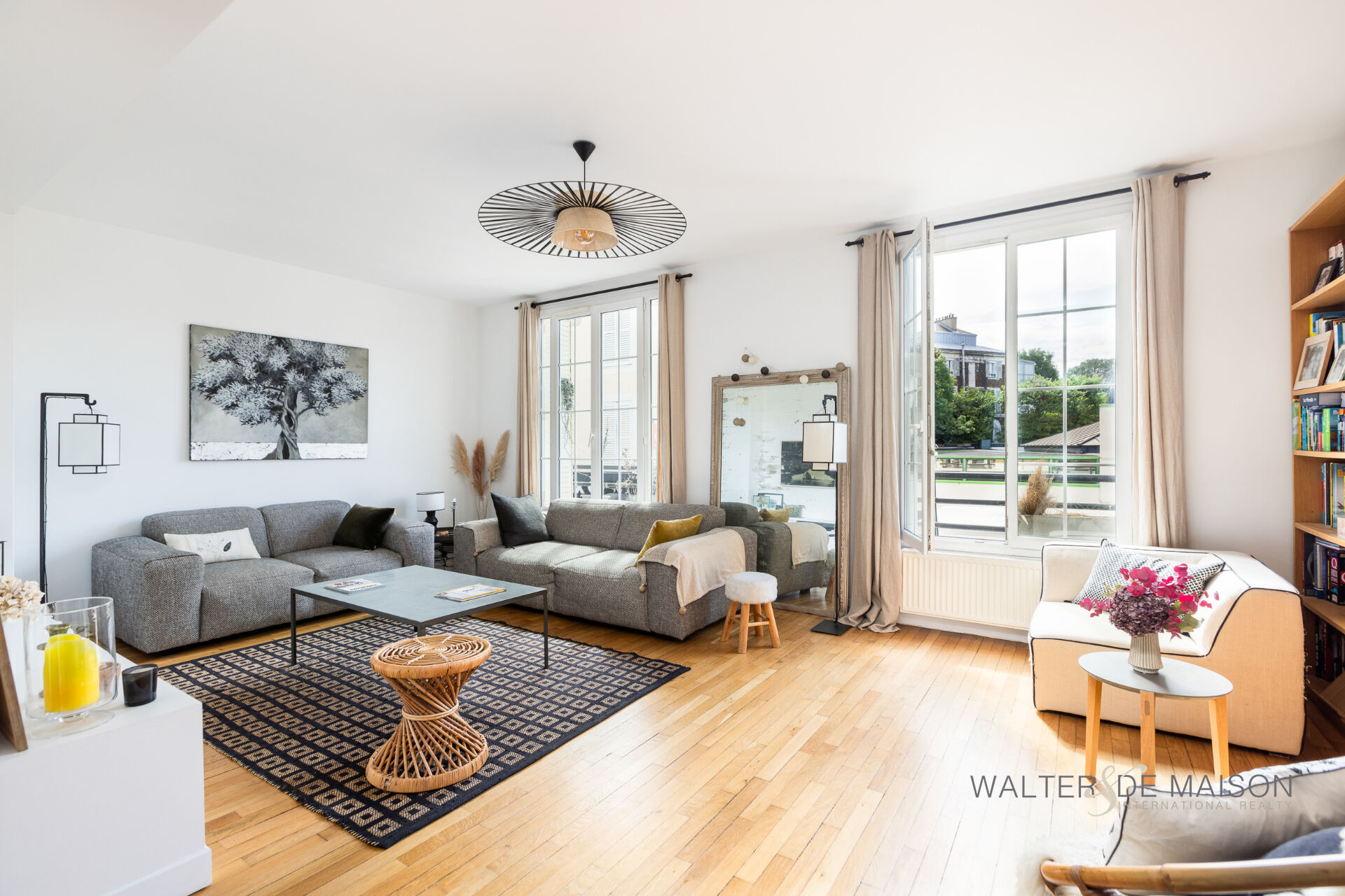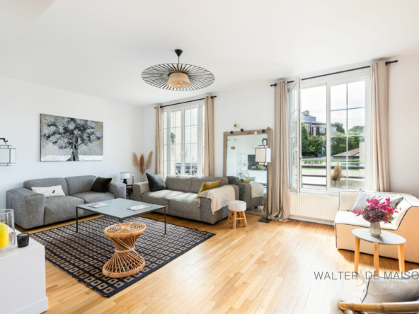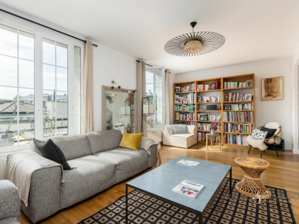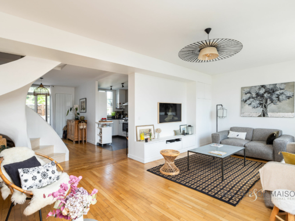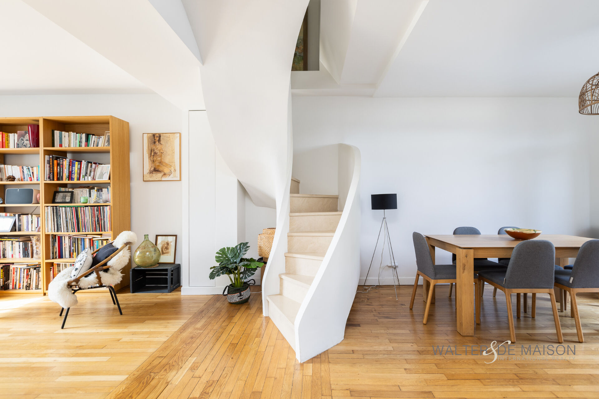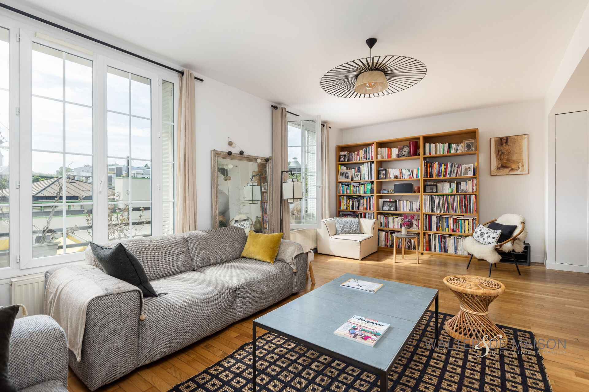 RARE A LA VENTE !! COUP DE COEUR ! En plein centre de Meudon Bellevue, à proximité immédiate des transports, commerces et écoles, très agréable appartement familial et de réception de 100 m2 doté d’une terrasse privative de 16m2, au sein d’un bel immeuble ancien des années 30 bien entretenu. Traversant, lumineux et ensoleillé, cet appartement duplex se compose au premier niveau d’une entrée avec rangements intégrés, une cuisine américaine ouverte sur une salle à manger de plain-pied avec la terrasse arborée, un vaste double-séjour sur rue et une salle d’eau avec toilettes. Un superbe escalier en pierre réalisé sur mesure donne accès à l’étage qui offre un palier, 3 belles chambres de plus de 12 m2 chacune et une salle de douche avec toilettes. Deux caves complètent ce bien.