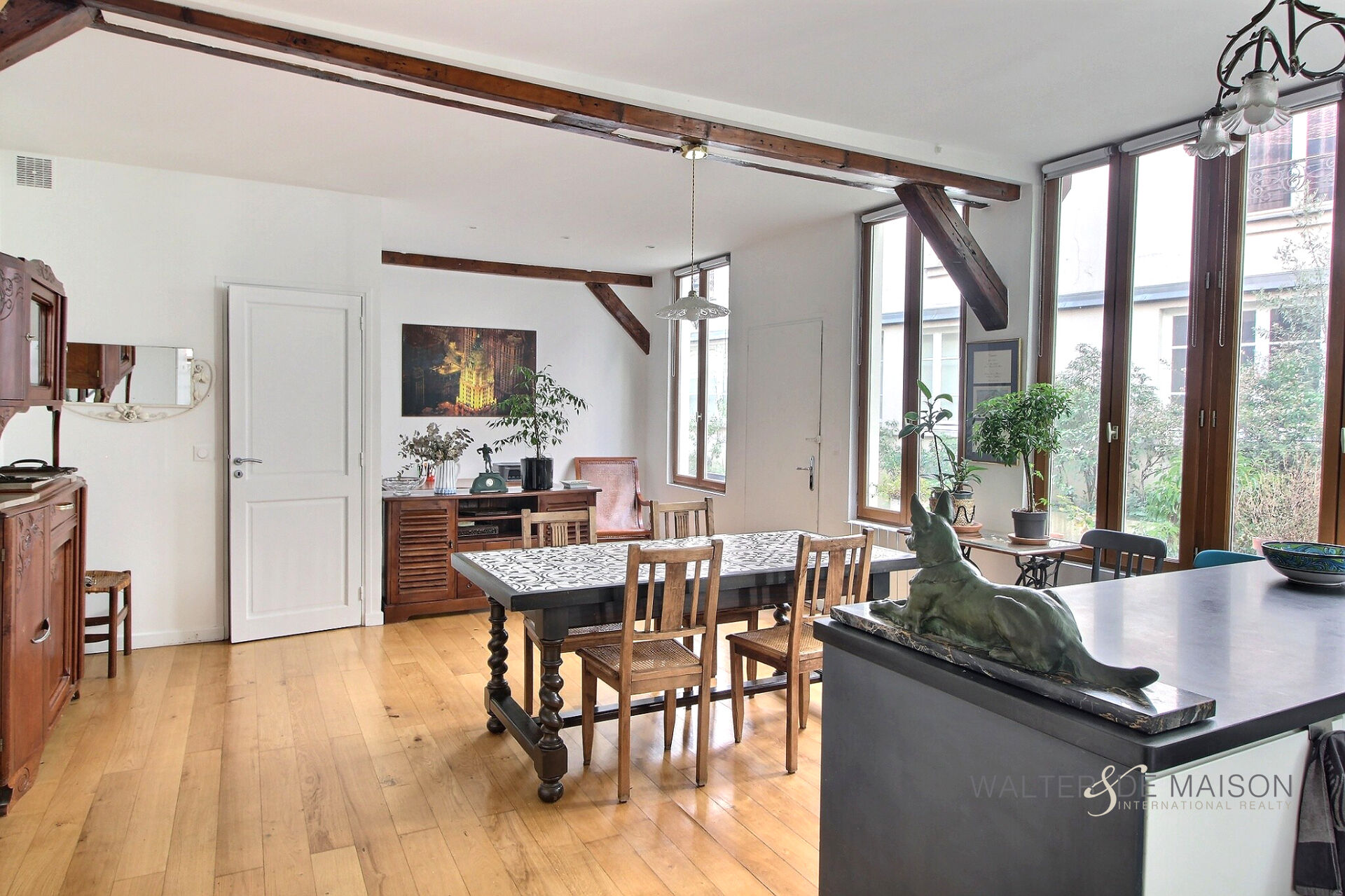 A deux pas de la place de la Nation, cette maison atypique de 144 m2 au sol (118 Carrez), située au fond d’une cour offre un havre de tranquillité. Au rez-de-chaussée, la cuisine ouverte donne sur une salle à manger, formant un espace de vie de 40 m² et un toilettes indépendant.