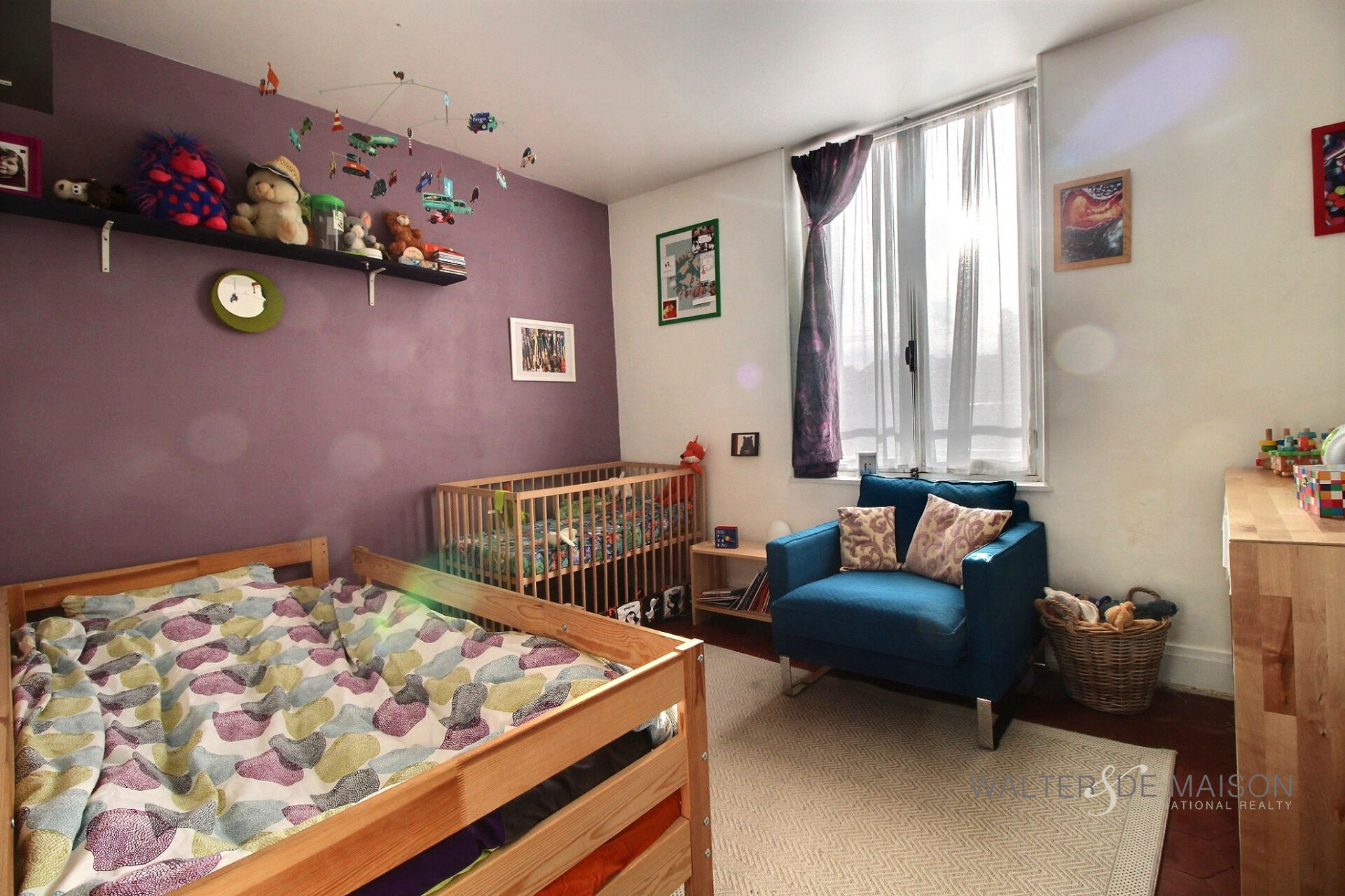 Saint-Denis, à 4 mn à pied du Métro Basilique, 3 mn du Tramway, 7/8 mn de la gare RER D, au sein du coeur de ville commerçant, au 2ème étage par escalier d’un immeuble ancien, très agréable appartement comprenant une entrée, un séjour de 27m², trois chambres (4 possibles), une pièce salon/atelier (ou chambre), une grande cuisine dînatoire, une salle de bains, wc. Cave.