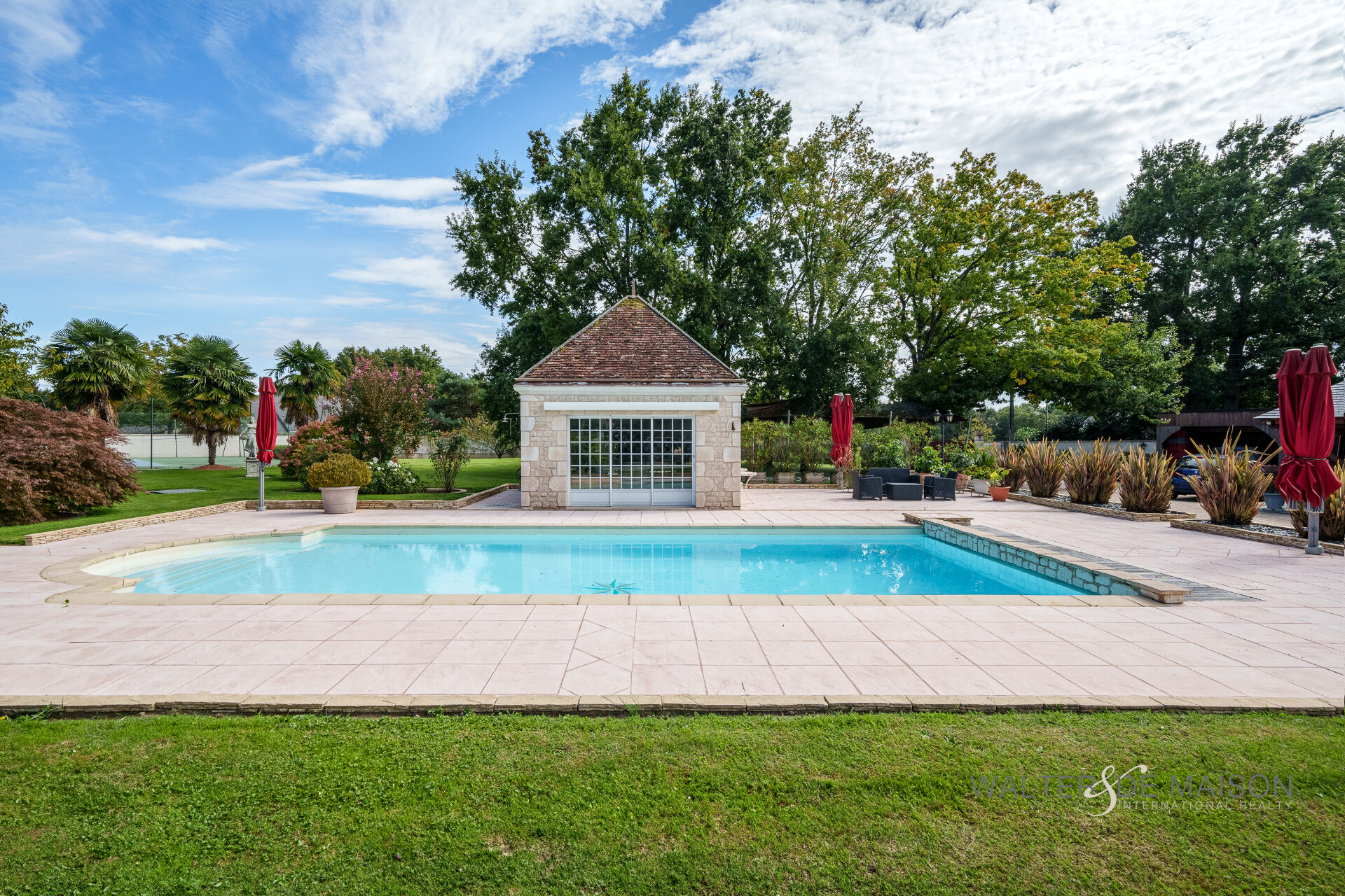 Enfin, vous serez séduit par son parc paysagé entièrement clos avec une piscine et son Pool House, un terrain de tennis, un putting green, un terrain de boules ainsi qu’une cuisine d’été équipée.