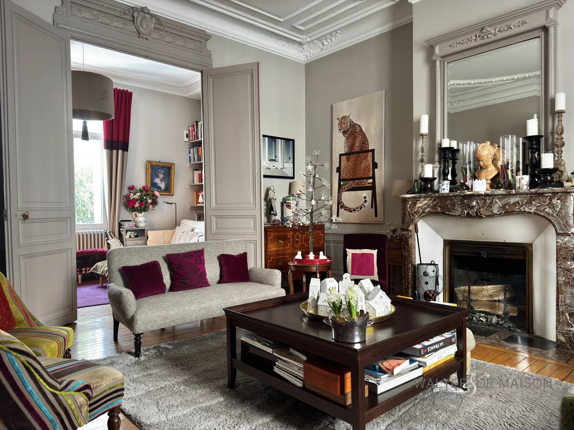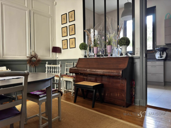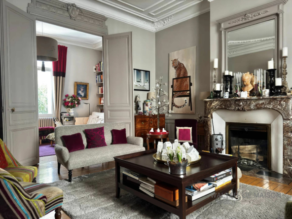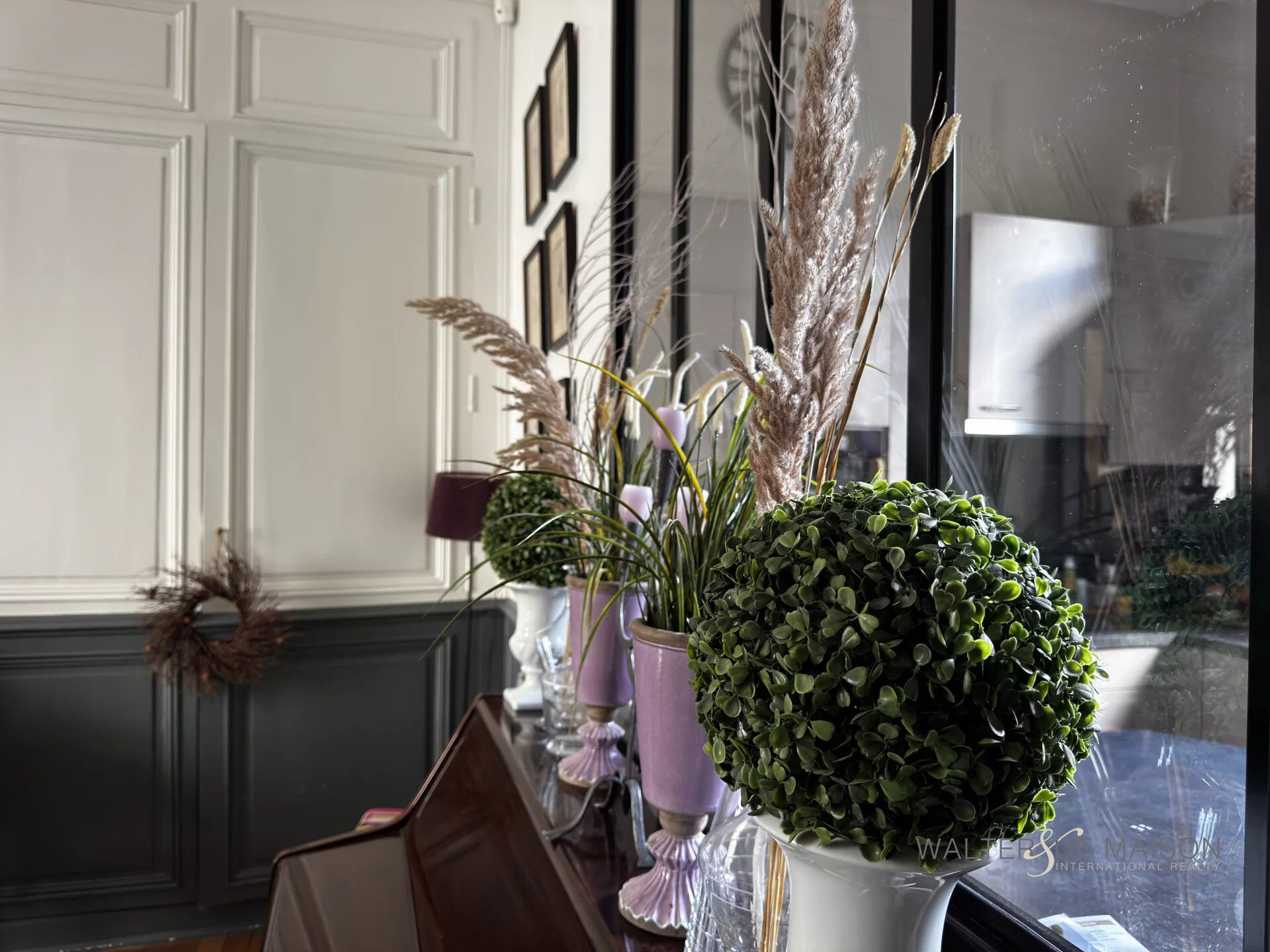 Dès l’entrée, un hall lumineux et accueillant ouvre sur de magnifiques pièces de réception. A droite, un double salon élégant baigné de lumière ; à gauche, une salle à manger spacieuse qui communique directement avec la cuisine et l’accès au jardin. Le tout ayant conservé ses lettres de noblesse grâce aux éléments anciens: parquets, cheminées, moulures…