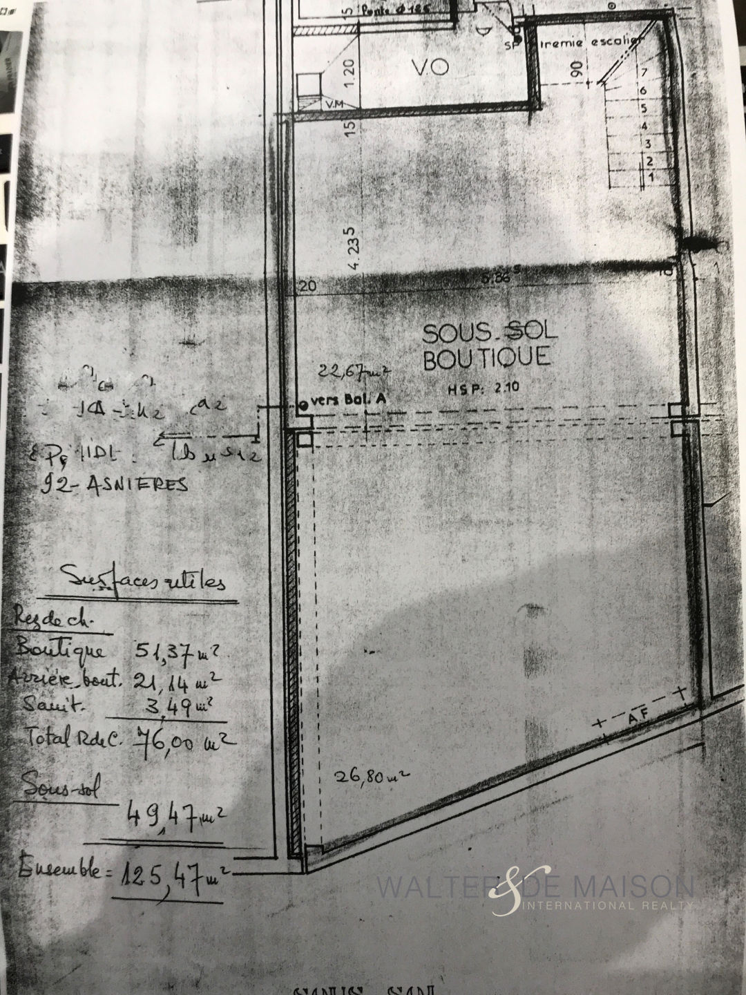 Exclusivité – Asnières, 85 Avenue de la Marne, tout proche carrefour rue Gallieni, secteur commerçant et passant, boutique rénovée en rez-de-chaussée de 70 m² environ, sur rue très passante, sous-sol de 50 m² environ.