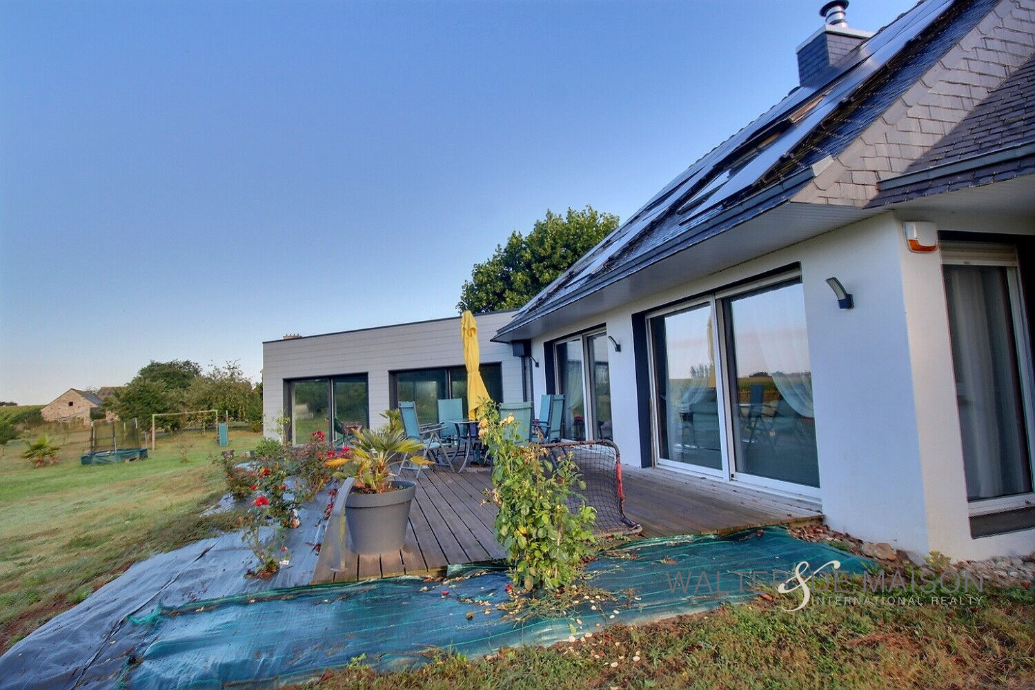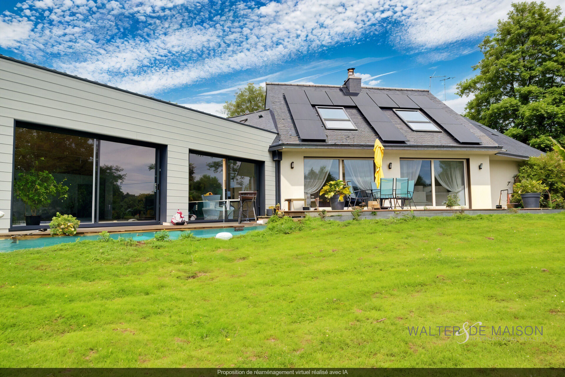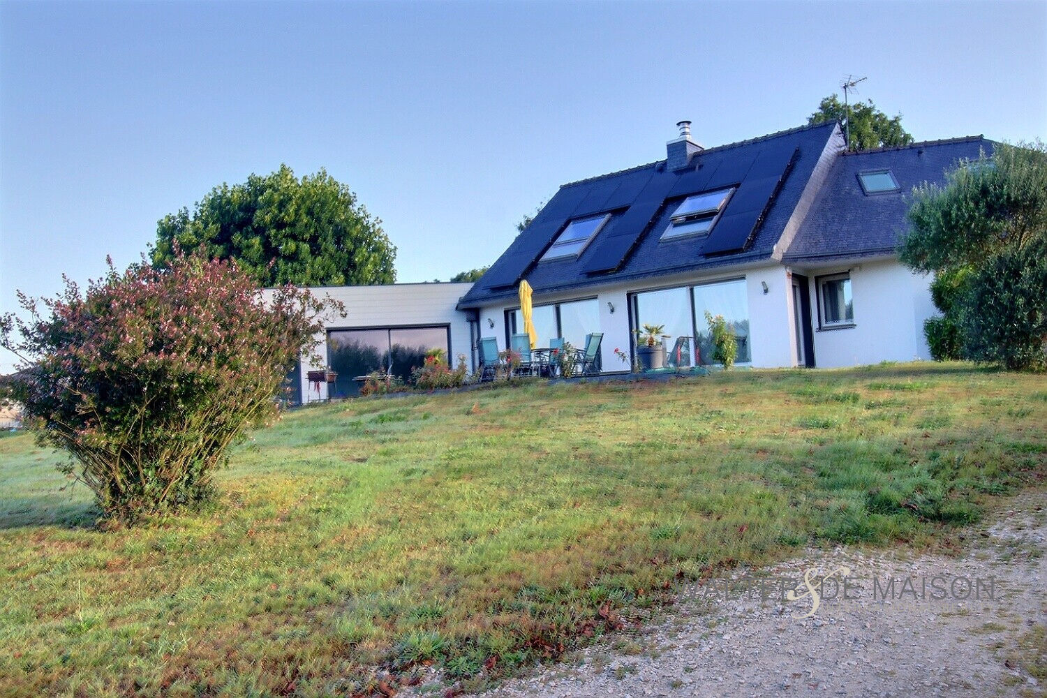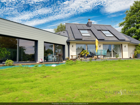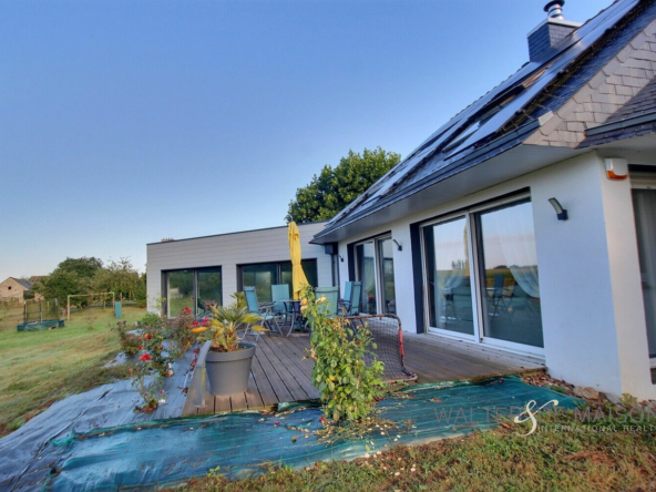 Belle maison contemporaine sur un terrain de 1ha 4 se compose : au r-d-ch. un grand espace de vie de 53m² exposé sud-ouest, une très belle cuisine aménagée équipée, une arrière cuisine, 3 chambres allant de 9 à 10.50 m²,1 bureau, une salle de bains et douche , 1 WC, 1 espace détente .
