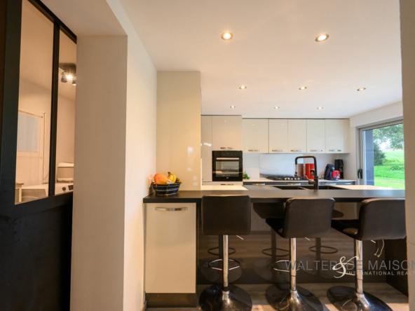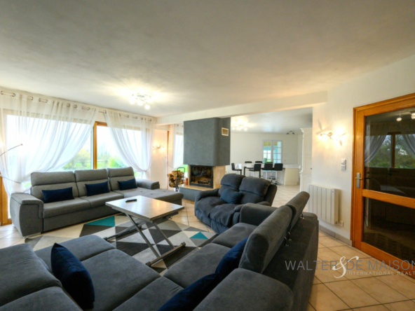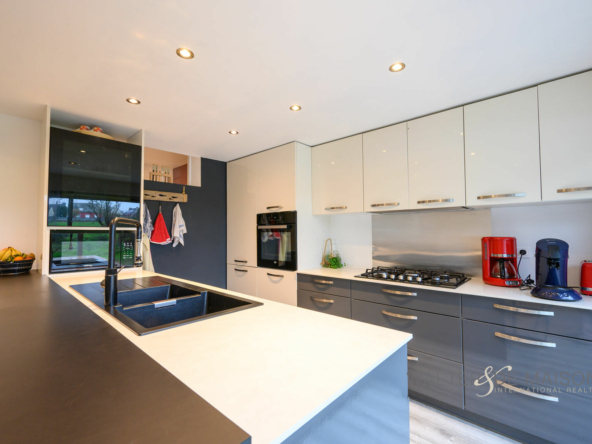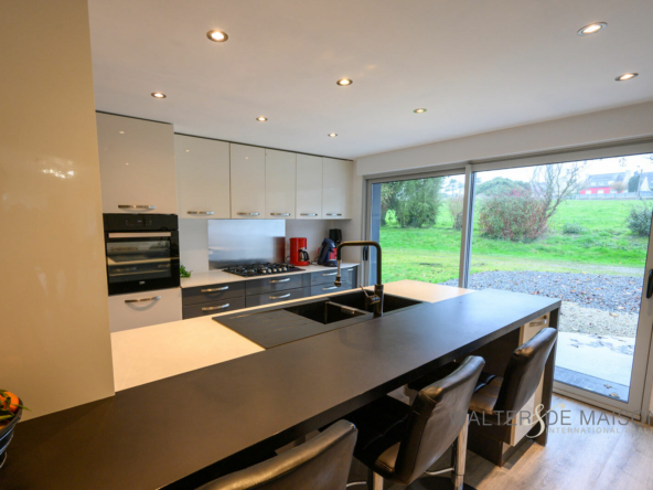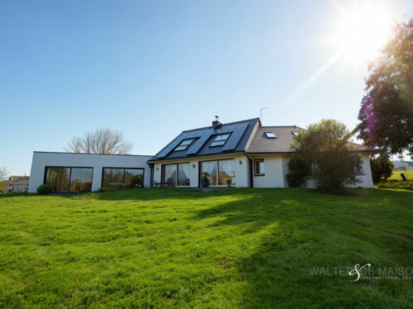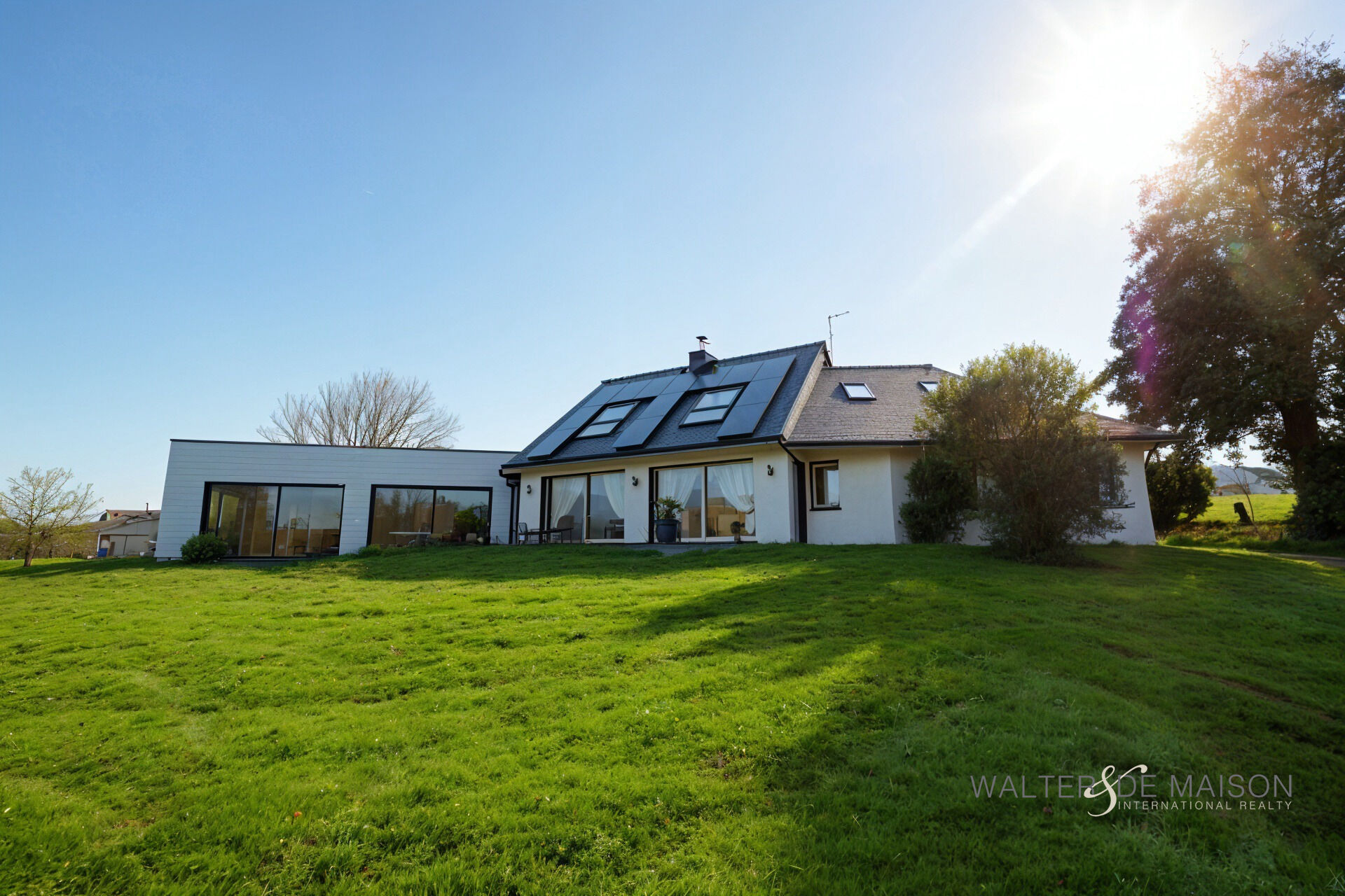 Belle maison contemporaine sur un terrain de 1ha 4 se compose : au r-d-ch. un grand espace de vie de 53m² exposé sud-ouest, une très belle cuisine aménagée équipée, une arrière cuisine, 3 chambres de 9 à 10.50 m², 1 bureau, une salle de bains et douche , 1 WC, 1 espace détente .