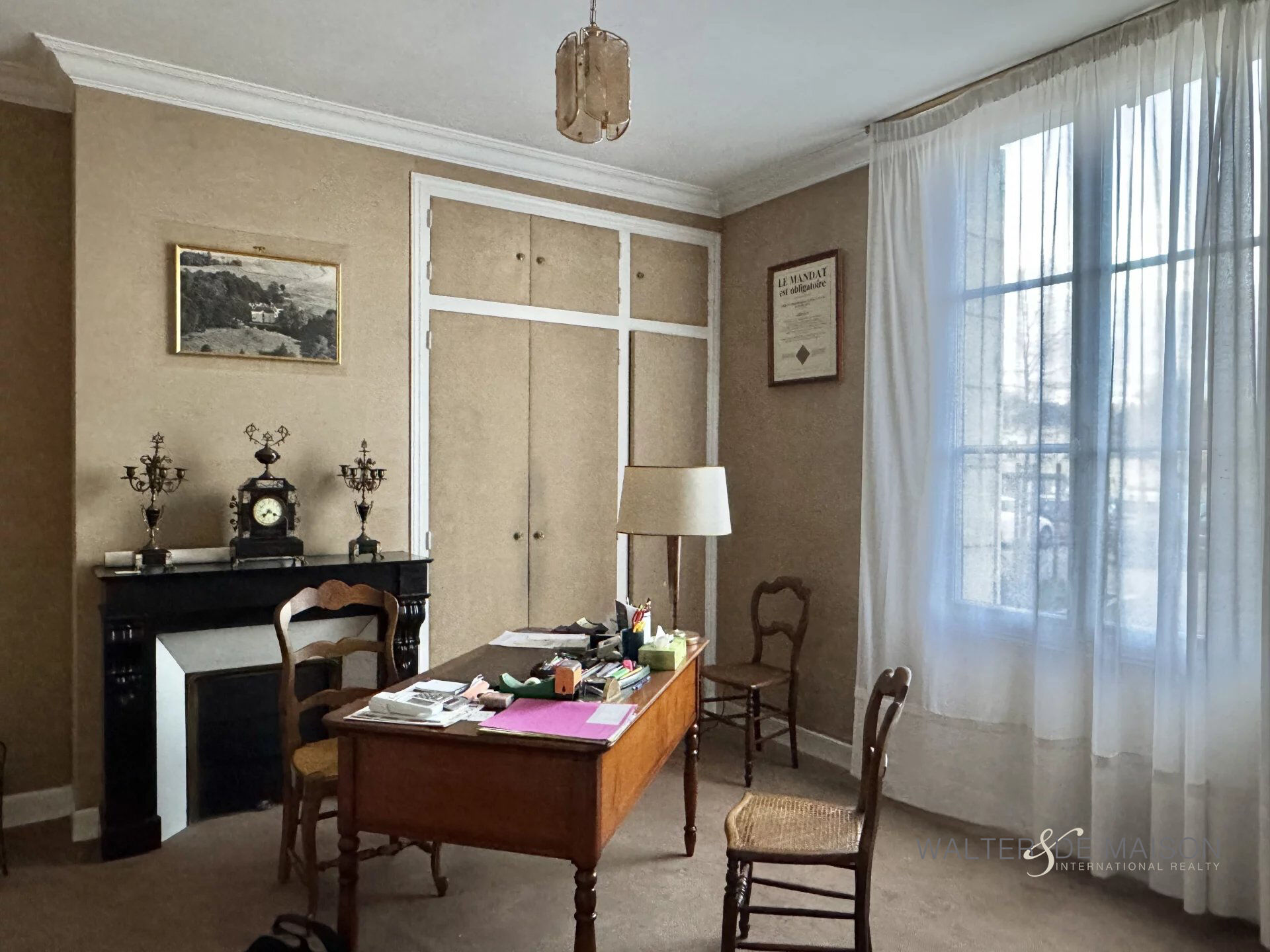 La demeure s’ouvre sur une entrée de caractère donnant accès à une grande pièce de réception chargée d’histoire, prolongée par un jardin clos et bien abrité – un espace extérieur rare pour un bien de centre-ville. Une aile entièrement indépendante abrite plusieurs bureaux équipés d’un système de chauffage récent, offrant la possibilité de combiner vie privée et activité professionnelle sous le même toit, ou d’envisager une division locative.