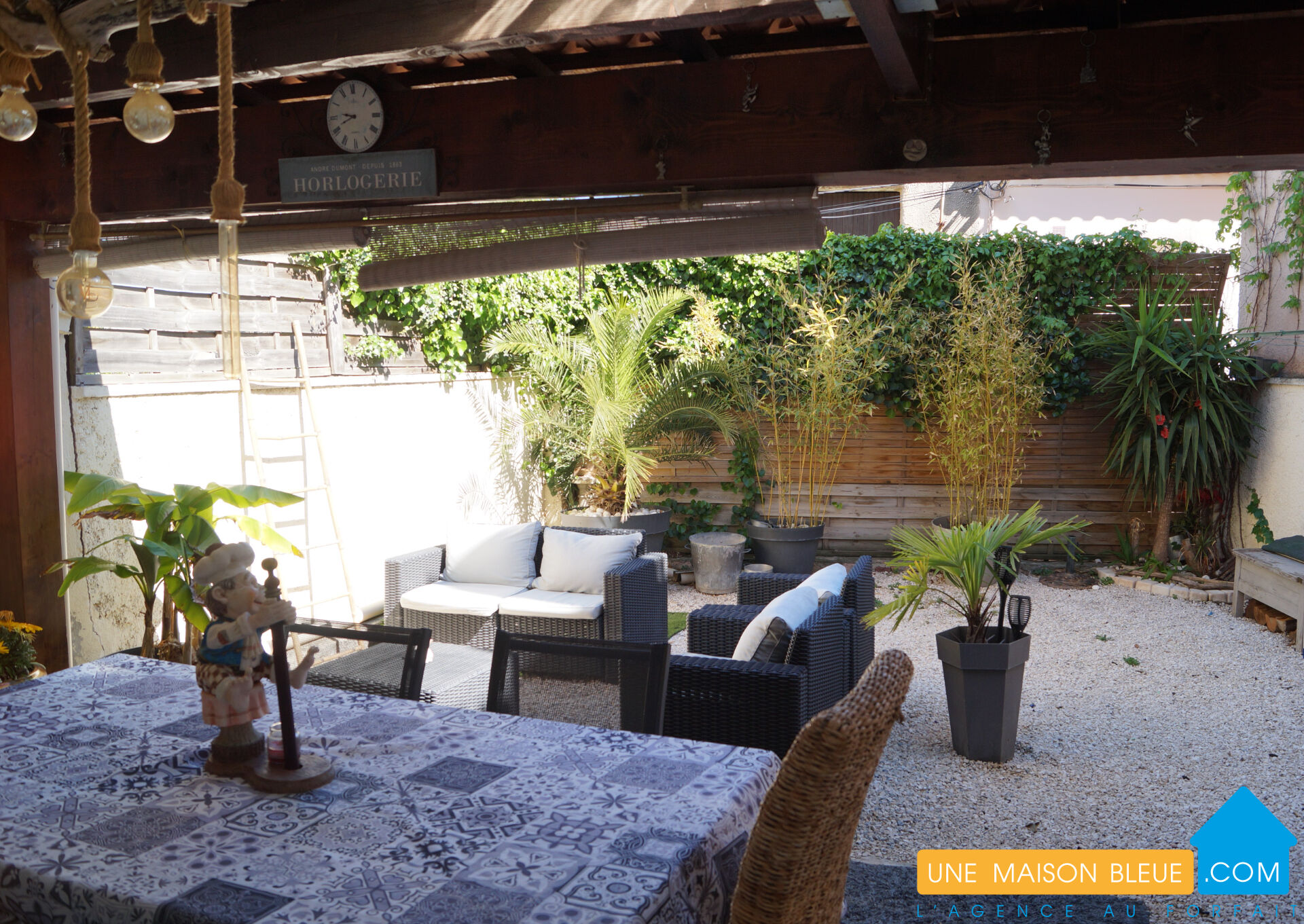 Le jardin dispose d’un terrasse couverte et d’un espace ouvert sans vis à vis.