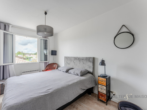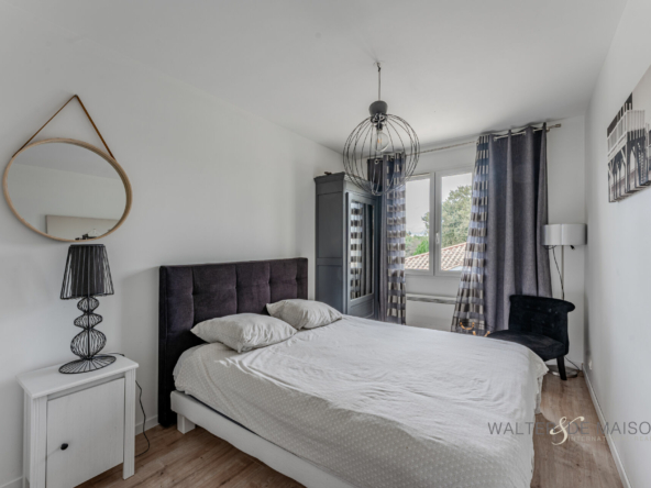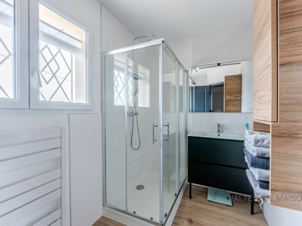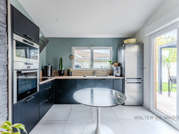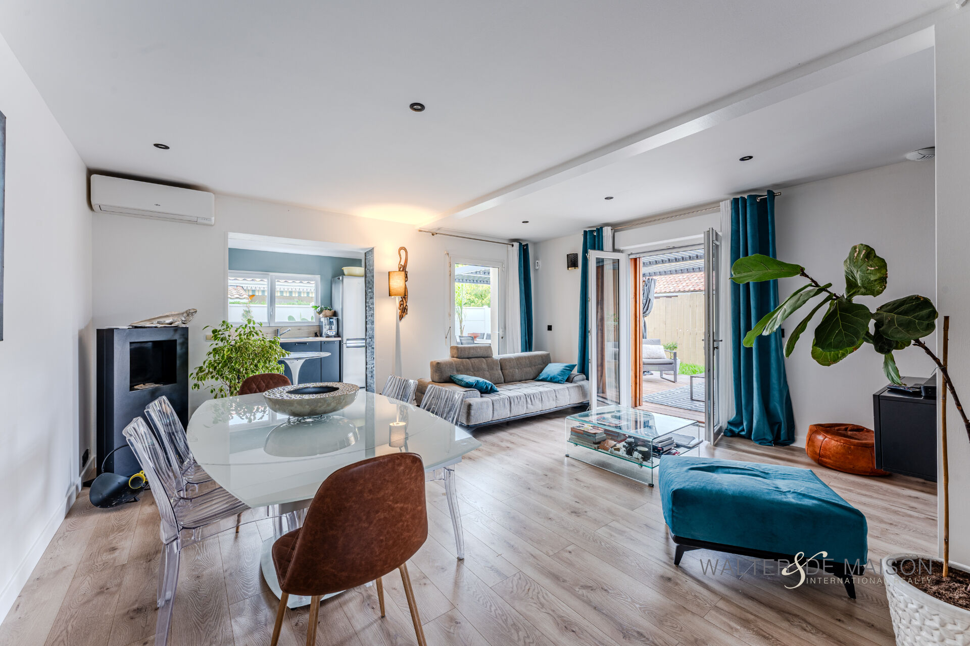 La cuisine contemporaine entièrement équipée ravira les amateurs de convivialité. A l’étage, vous trouverez deux chambres lumineuses et une salle d’eau moderne. .Un garage et deux place de stationnement intérieure accessible via portail électrique complètent ce bien en parfait état, prêt à accueillir ses nouveaux propriétaires. Cette maison est équipée de climatisation réversible pour plus de confort.