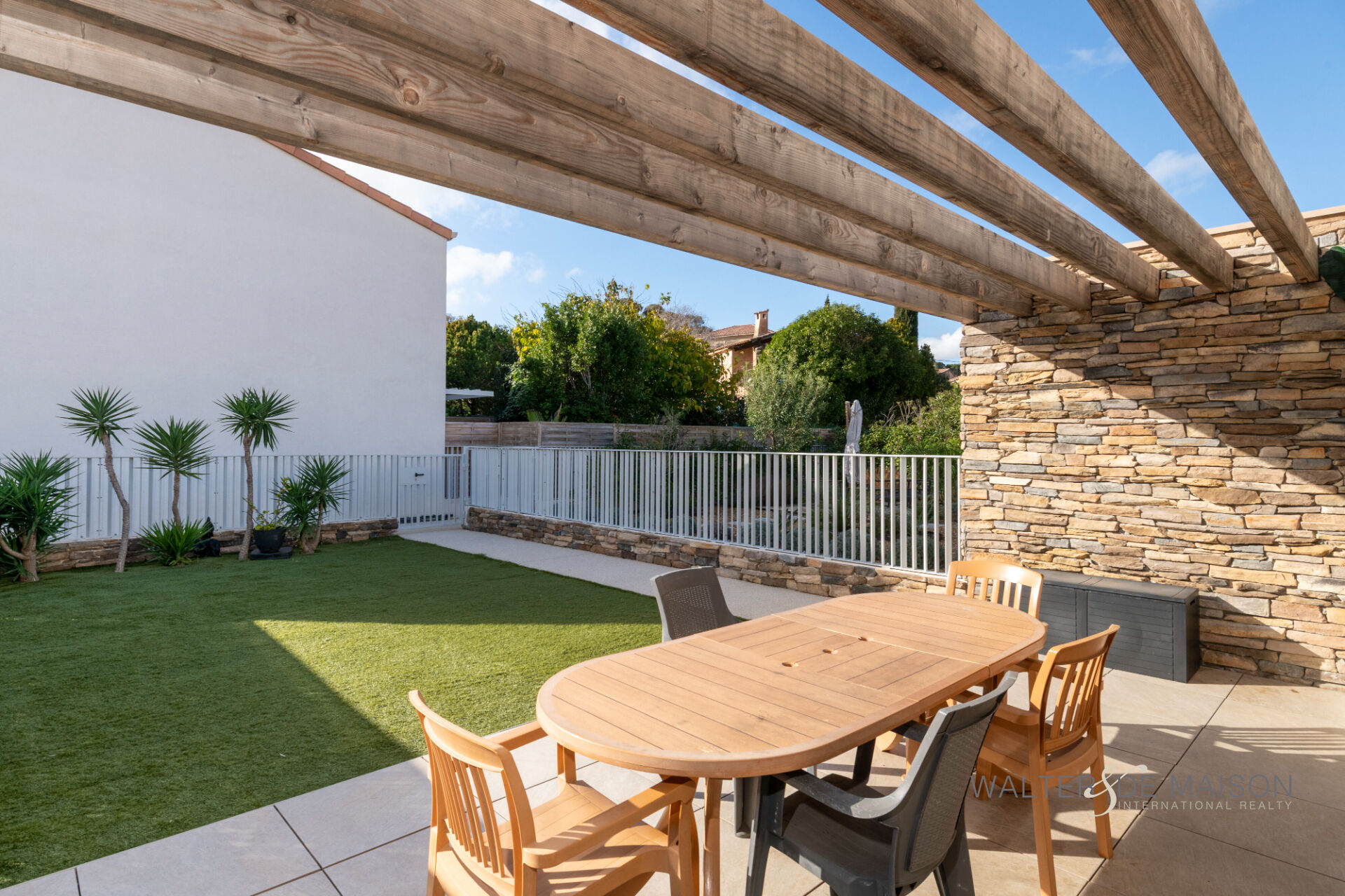 La pièce de vie, accueille une cuisine aménagée et équipée,elle s’ouvre sur une agréable terrasse prolongée par un jardin intimiste, offrant de véritables espaces extérieurs propices à la détente.