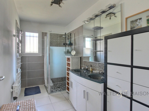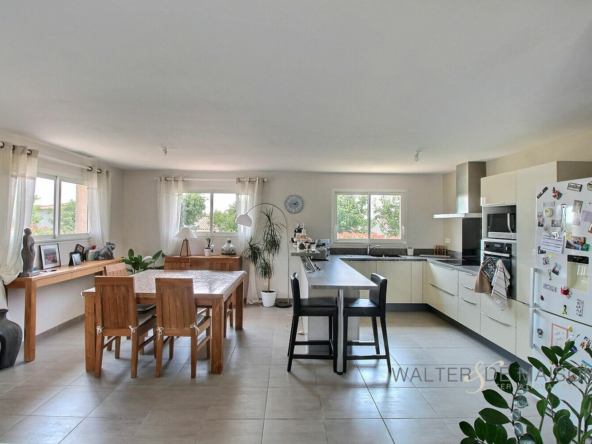 Le bien de construction récente (2013) présente d’excellentes prestations . Grâce à la parfaite isolation et l’installation en 2021 d’une climatisation réversible (gainable) de qualité , le bien bénéficie d’un chauffage économe et d’une régulation thermique très confortable en hiver comme en été. La cuisine est parfaitement équipée et fonctionnelle. La grande pièce de vie d’environ 45 m2 en exposition traversante sud Ouest/Nord EST est très lumineuse du matin au soir. La salle de bains avec grande douche à l’italienne est spacieuse et en parfait état. Le W-C est indépendant . les trois chambres sont équipées de grands placards de rangement. Le bien bénéficie également d’un cellier. Le plus un grang garage indépendant de plus de 27 m2. Le quartier résidentiel est très calme. La proximité des transports, des écoles et des commerces sont autant d’atouts supplémentaires.