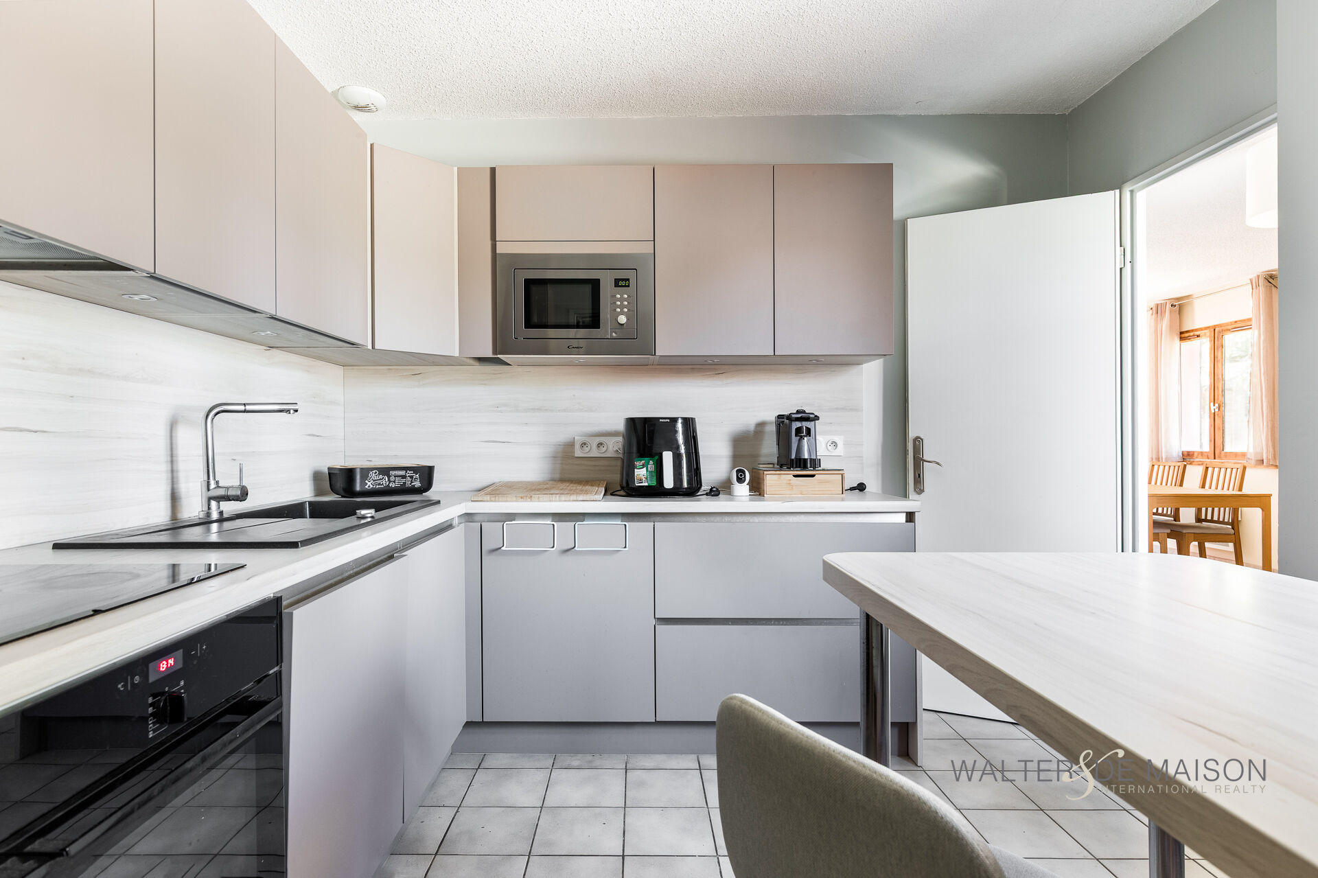 Une cuisine indépendante entièrement aménagée et équipée est suffisamment spacieuse pour prendre les repas familiaux.