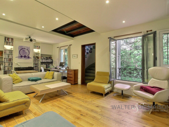 A proximité du Bois de Vincennes, au sein d’une petite copropriété, vous serez séduit par cette maison orientée sud, de 113,67 m² (loi Carrez) avec jardin arboré, sur 4 niveaux desservis par un escalier en colimaçon atypique.