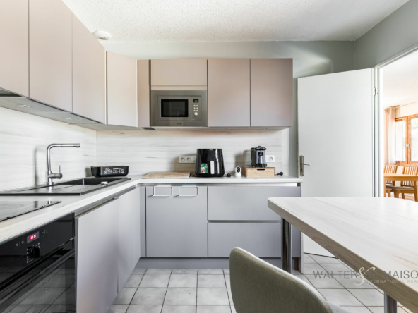 Une cuisine indépendante entièrement aménagée et équipée ( frigo, plaques de cuissons, hotte, lave-vaisselle, rangements, four, micro-onde), une buanderie attenante à la cuisine.