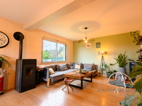 – Vaste pièce de vie lumineuse avec poêle à granulés (chauffage principal performant qui dessert toute la maison)
