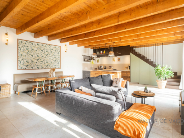 Ancienne grange d’époque rénovée avec beaucoup de goût dans un quartier résidentiel de Châteaurenard. Au rdc elle se compose d’un hall d’entrée avec rangement et wc. La pièce de vie lumineuse avec son confortable salon et sa cuisine équipée sur mesure. A l’étage, 3 chambres : le coin nuit se compose de deux chambres se partageant une salle de bain avec baignoire et douche à l’italienne et wc, et d’une suite parentale avec sa salle d’eau.