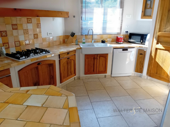 Une cuisine ouverte entièrement équipée
