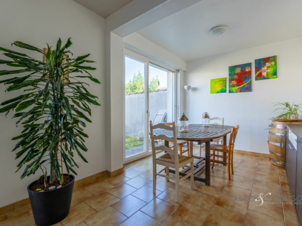 Au rez-de-chaussée, vous découvrirez une entrée séparée accueillante, un salon-séjour lumineux, une cuisine ouverte équipée, et une buanderie discrète et pratique, pensée pour simplifier votre quotidien.