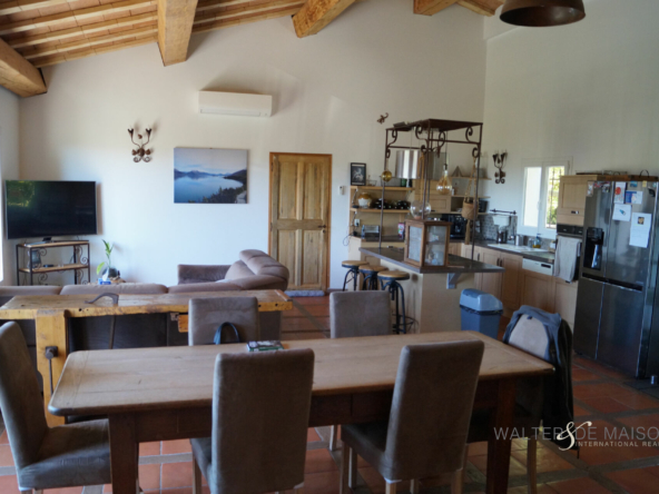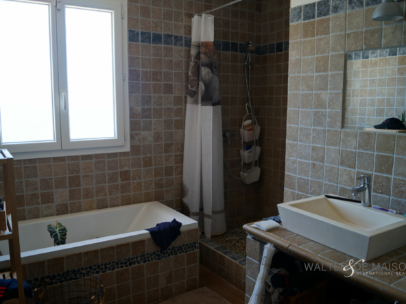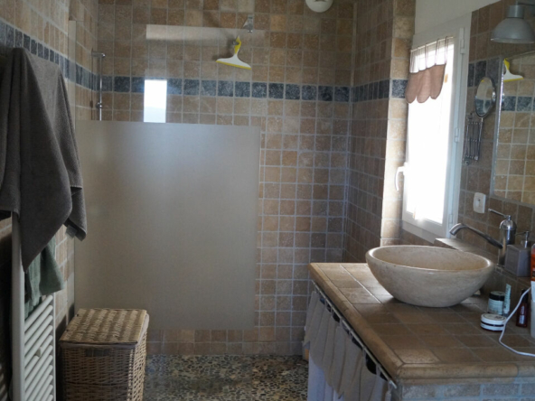La villa dispose d’une Clim, poêle à bois GODIN, aspirateur central, adoucisseur…