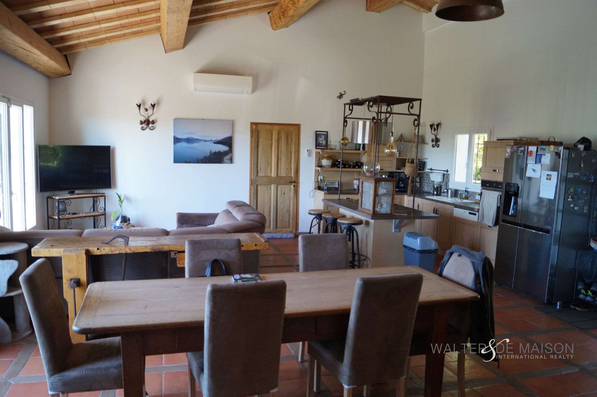 Je vous propose cette magnifique villa récente avec de belles prestations et une vue superbe sur la vallée. De plain pied elle se compose d’une belle pièce de vie ouverte avec de beaux volumes. Le coin nuit avec une chambre parentale et sa salle d’eau, un bureau et un wc indépendant avec lave-mains.