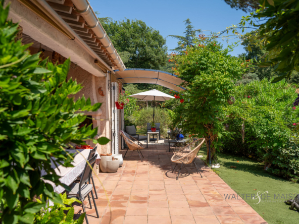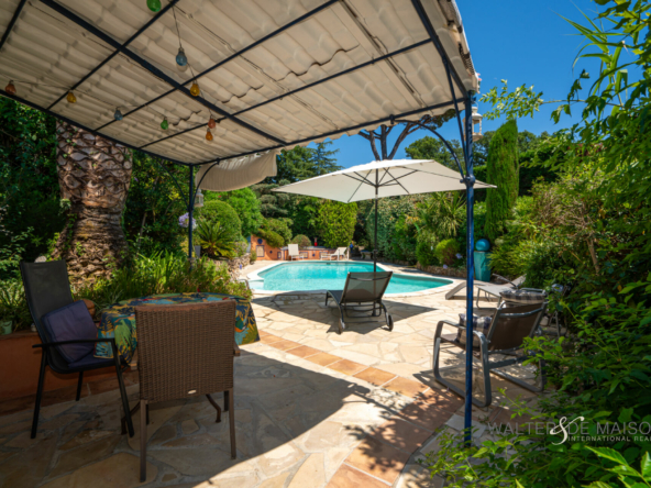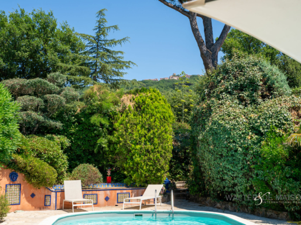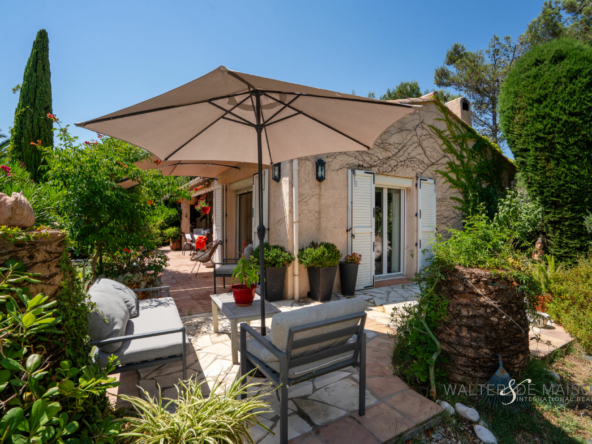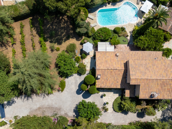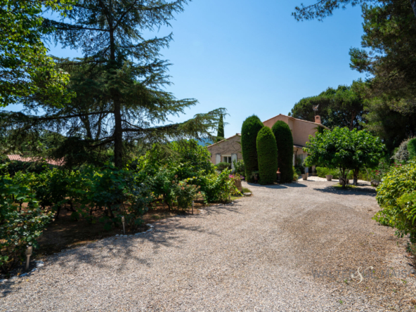 Située dans un environnement campagne, cette charmante propriété bénéficie d’un cadre paisible et d’une jolie vue sur le village de Gassin. Le tout est implanté sur un terrain arboré de plus de 2 000 m², agrémenté de vignes et de végétation aux essences méditerranéennes.