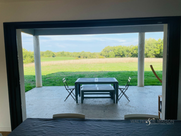 Un terrain de 3 260 m² sans vis-à-vis, offrant une vue dégagée sur la campagne avec des couchers de soleil à couper le souffle.