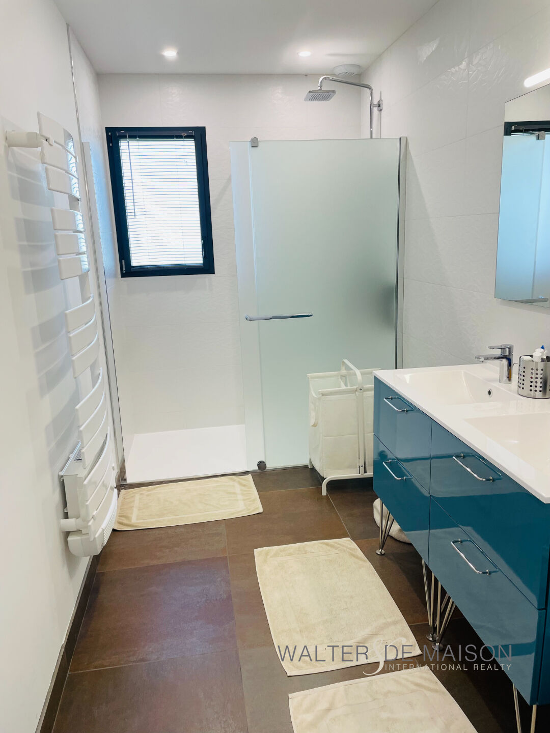 Salles d’eau modernes : 2 grandes douches à l’italienne (180 cm) avec doubles vasques, dont l’une dispose d’un WC et d’un espace lingerie.