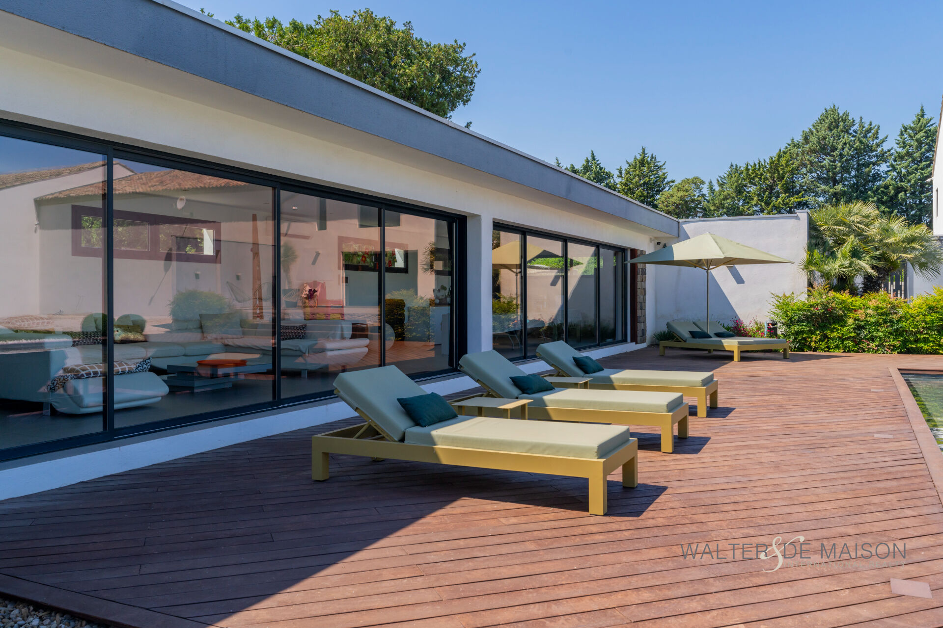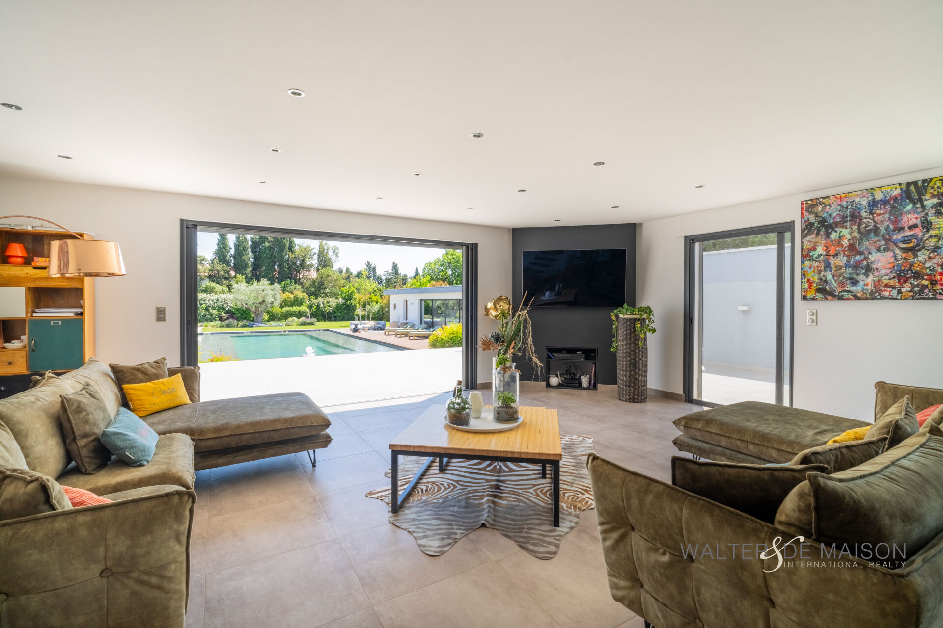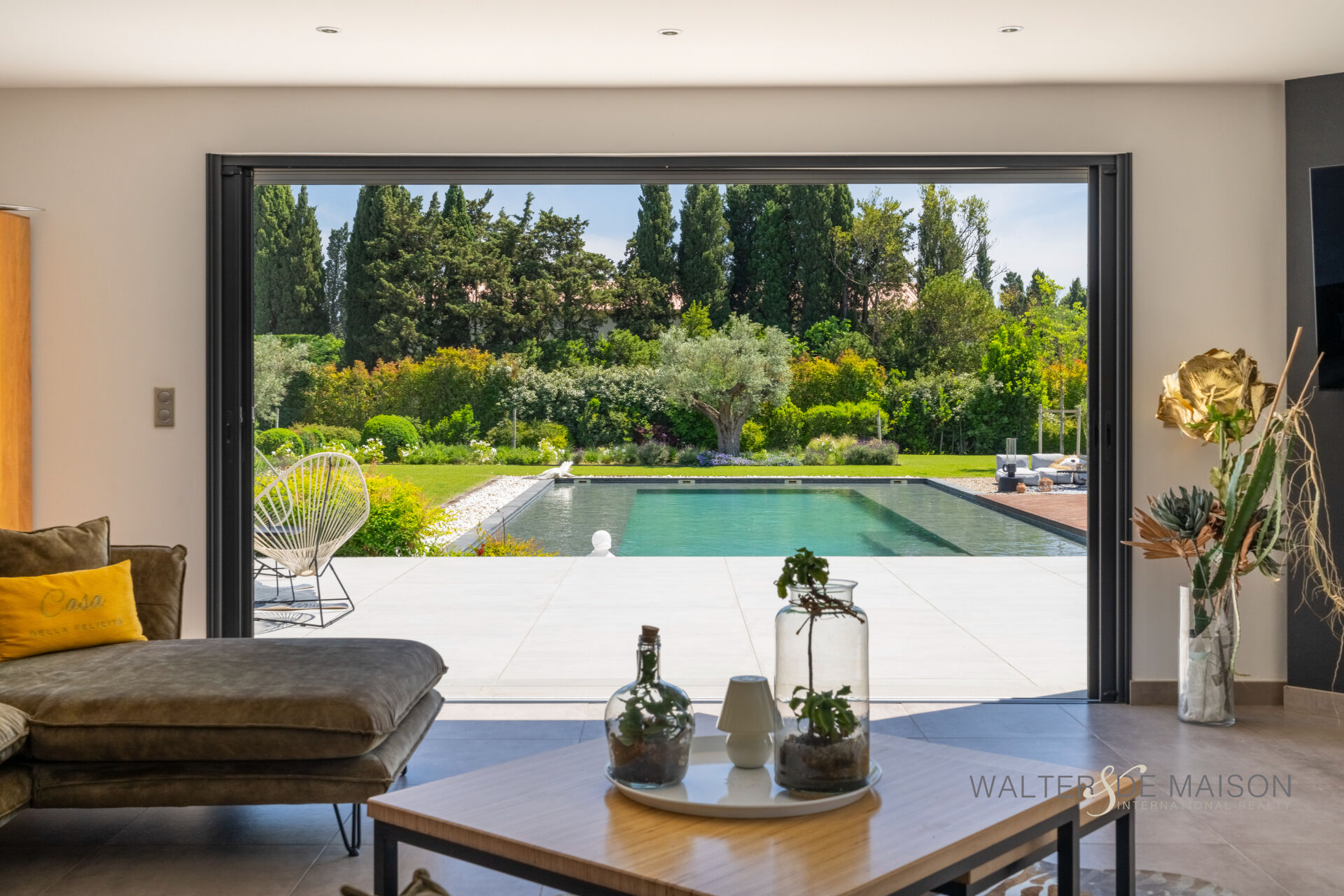 Son pool house avec ses immenses baies à galandage à l’image de sa piscine , offre des volumes généreux avec, une cuisine d’été , salle à manger , un grand salon , lit , une salle d’eau , parfait pour se retrouver autour d’un bon repas le soir venant…
