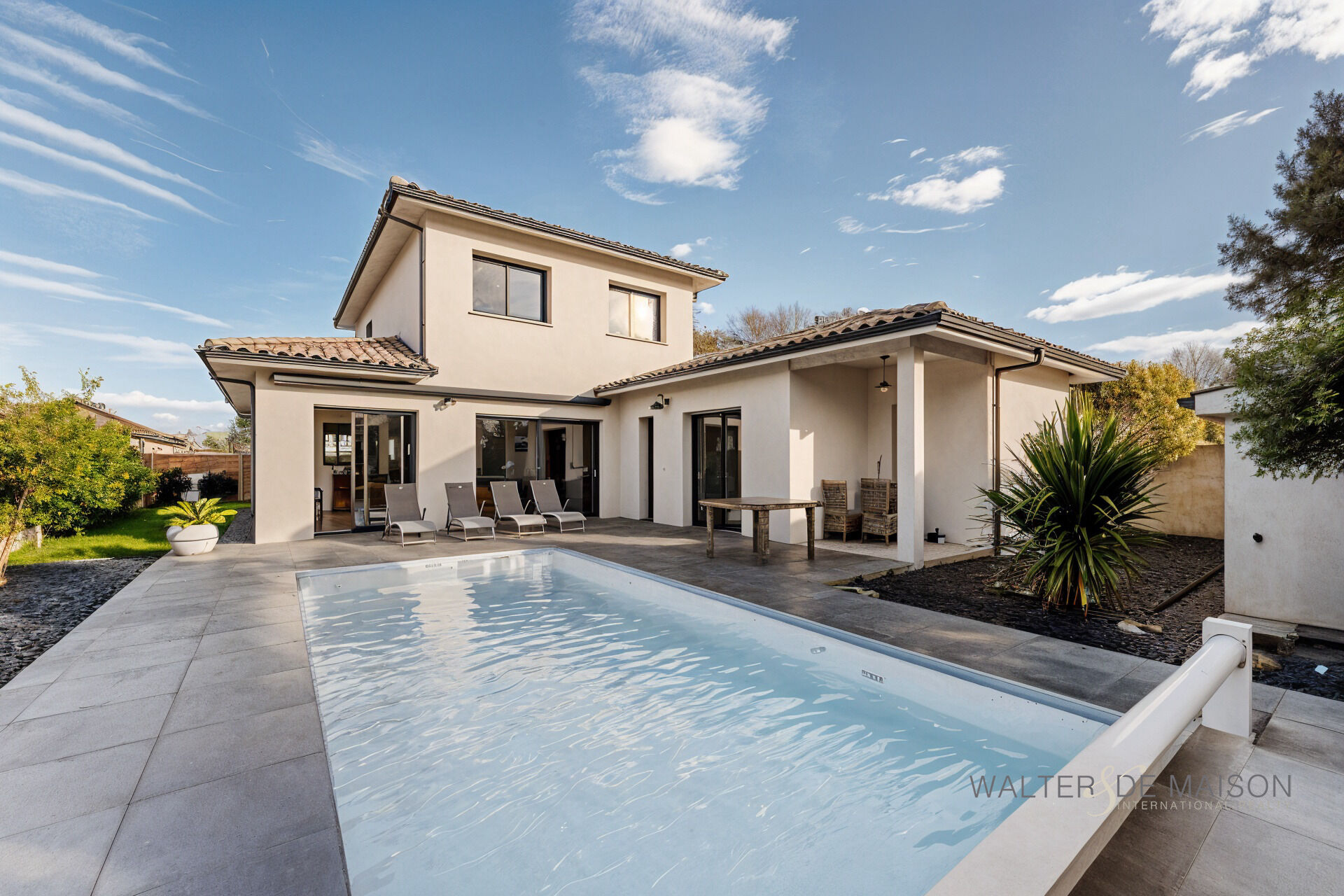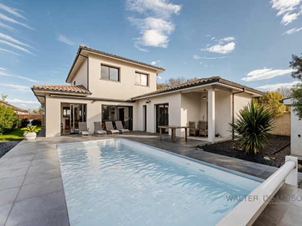 Gujan Mestras,Idéalement située dans une impasse, cette maison contemporaine de 141 m², construite en 2018, offre des prestations haut de gamme et des espaces parfaitement optimisés :