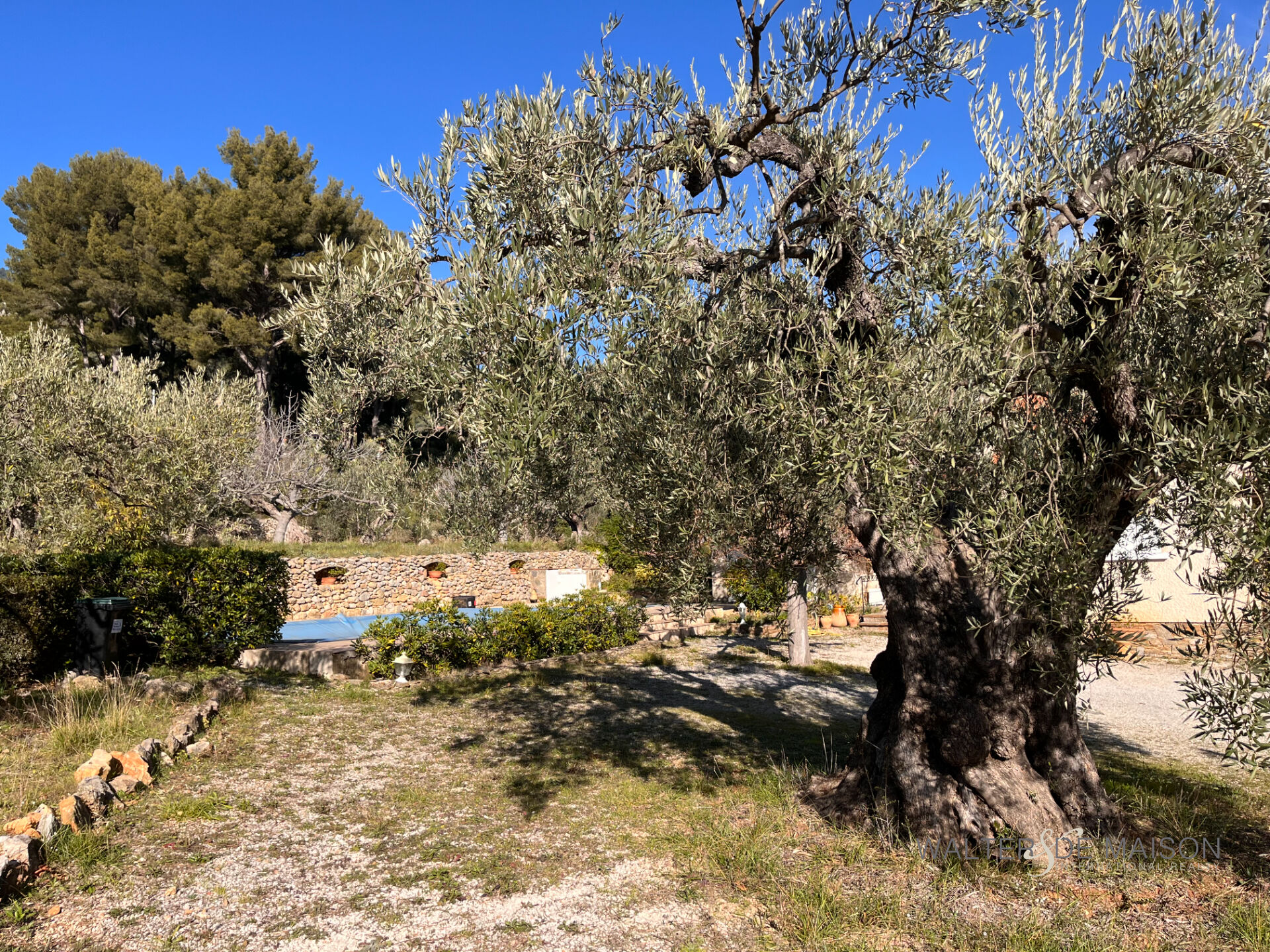A l’extérieur, un terrain de plus de 1600 m² vous plonge dans une ambiance paisible et méditerranéenne. Une piscine entourée de restanques en pierres sèches complète parfaitement cet écrin de verdure.