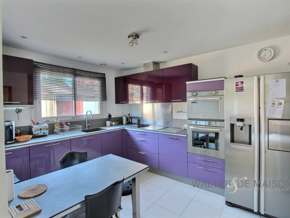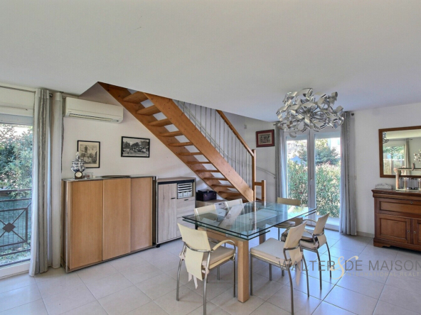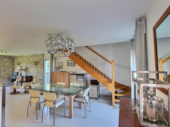 A quelques minutes de Portet sur Garonne sur la commune de Pinsaguel centre : Confortable villa de type 5 en R+1 , développant 152 m2 habitables , 4 chambres, 3 salles de bains, 2 W-C., une grande pièce bureau en mezzanine, 2 garages . Parfait état général. Parcelle 337 m2. Cette habitation très lumineuse et calme s’inscrit dans un petit lotissement très résidentiel . Le bien qui ne souffre d’aucun vis-à-vis présente un caractère familial, il offre de très beaux volumes et un confort optimal. L’excellent DPE résulte de l’isolation, d’un chauffage au sol par PAC, d’une production d’eau chaude sanitaire avec un ballon thermodynamique; Notez que le bien bénéficie également d’une climatisation réversible. Le RDC présente une entrée spacieuse avec placards permettant d’accéder de part et d’autre à la cuisine et au séjour. La cuisine est parfaitement aménagée elle conduit elle même à un grand garage carrelé à usage de buanderie et pièce de rangement. Ce garage est équipé d’une borne de chargement rapide pour véhicules électrique. Le séjour permet l’accès à l’étage et à une suite comprenant: vestibule, W-C, puis chambre avec placards et salle de bains privative équipée d’une grande douche à l’italienne de mobiliers de rangement dont un meuble à double-vasques. A l’étage Une grande mezzanine peut être aménagée en bureau ., elle est séparée par un sas distribuant les 3 grandes chambres avec placards et la salle de bains . Une des chambres de l’étage bénéficie de sa propre salle d’eau. Le bien est parfaitement entretenu, la présence d’un deuxième garage est particulièrement appréciable. La possibilité de garer deux véhicules supplémentaires devant l’un des garages constitue un atout supplémentaire. Pour plus d’informations appelez moi.