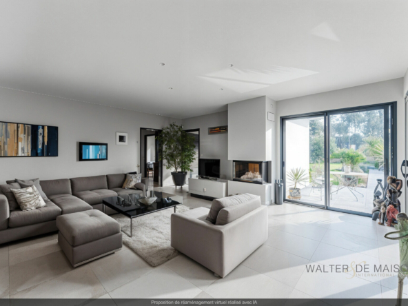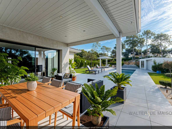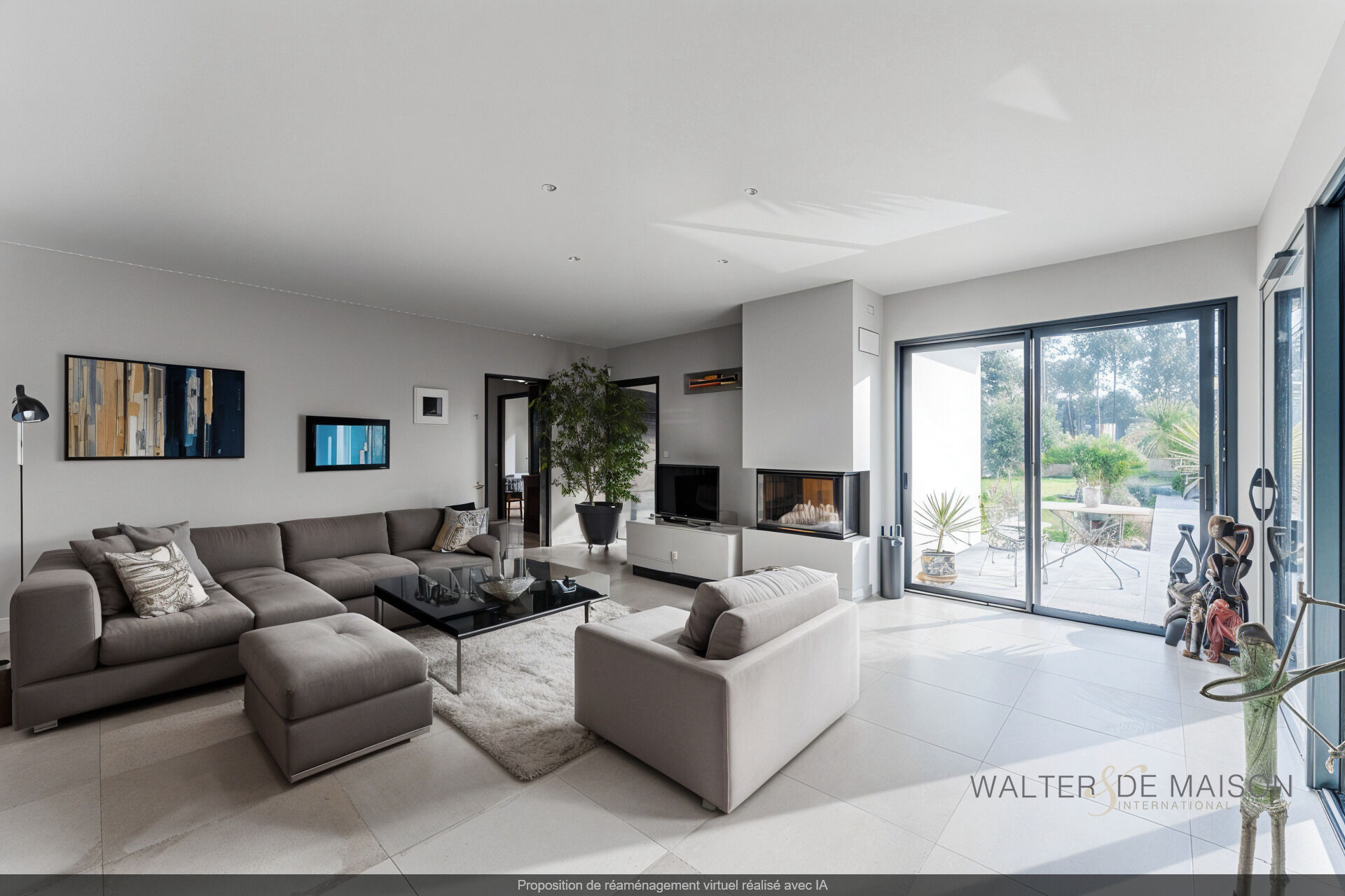 Brigitte LANNES ? Lanton Immobilier vous propose cette superbe villa contemporaine, idéalement située dans un cadre naturel privilégié aux portes d’Andernos et du joli village de Taussat, à seulement 20 minutes du Cap Ferret et 35 minutes de l’aéroport de Bordeaux-Mérignac. Un bien rare, alliant élégance, modernité et confort.