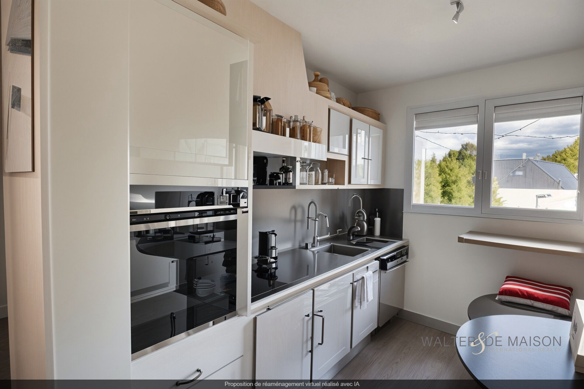 au R-D-CH nous trouvons un espace aménagé comprenant un salon séjour, une cuisine, une salle d ‘eau et wc une buanderie , une pièce aménageable en chambre ou autre, cette espace est idéal pour un adolescent (e) ou alors à but locatif.