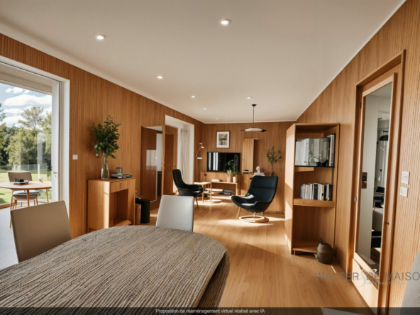 un chalet bois , garage pouvant recevoir trois voitures .