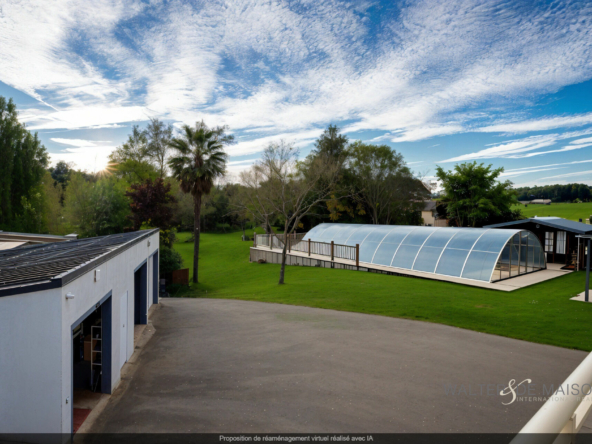 En exterieur : une piscine chauffée 5×10 couverte , cabanon et endroit technique pour la pompe de filtrage