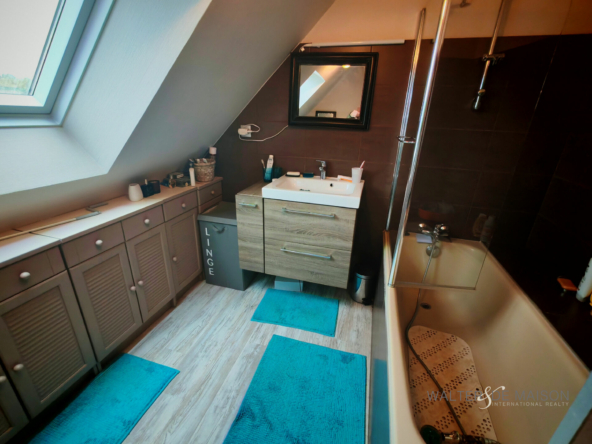 au 2e niveau : 3 chambres, une salle de bains, wc.